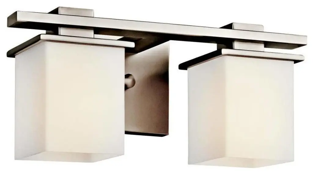 This 2 light wall fixture from the Tully collection creates a pleasing flow in any bathroom or vanity space. Characterized by clean lines and a simple cubic design, it provides an airy, uncluttered feel with an understated, contemporary flair. Featuring an Antique Pewter finish with Satin Etched Cased Opal Glass, this composition blends effortlessly with existing decor while still leaving a unique impression. May be installed with glass up or down.Voltage 120Number of Bulbs 2Bulb Type A19Wattage 100WBulbs are not included