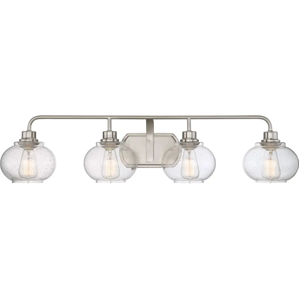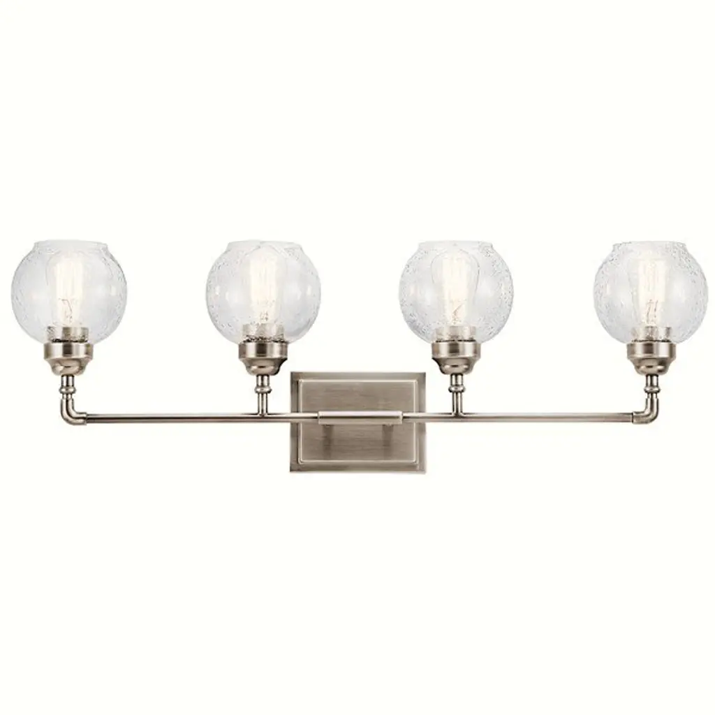 This Niles'' Antique Pewter 4 light bath light''s globe style is reminiscent of fixtures found in historic metropolitan buildings, icons of the industrial era. Niles modernizes the look with clean lines for a look that works in any home.Voltage 120Number of Bulbs 4Bulb Type A19Wattage 100WBulbs are not included
