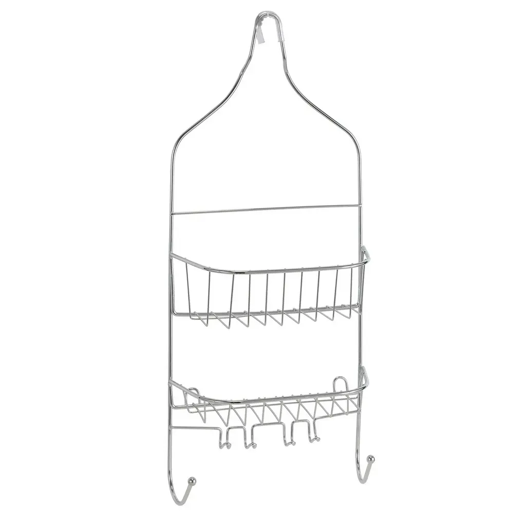 Expand your shower storage with this convenient bath caddy. Featuring quality iron construction with a chrome finish, it comes with two tiers and six hooks for plenty of hanging space.Material: IronFinish: Chrome FinishColor: Silver