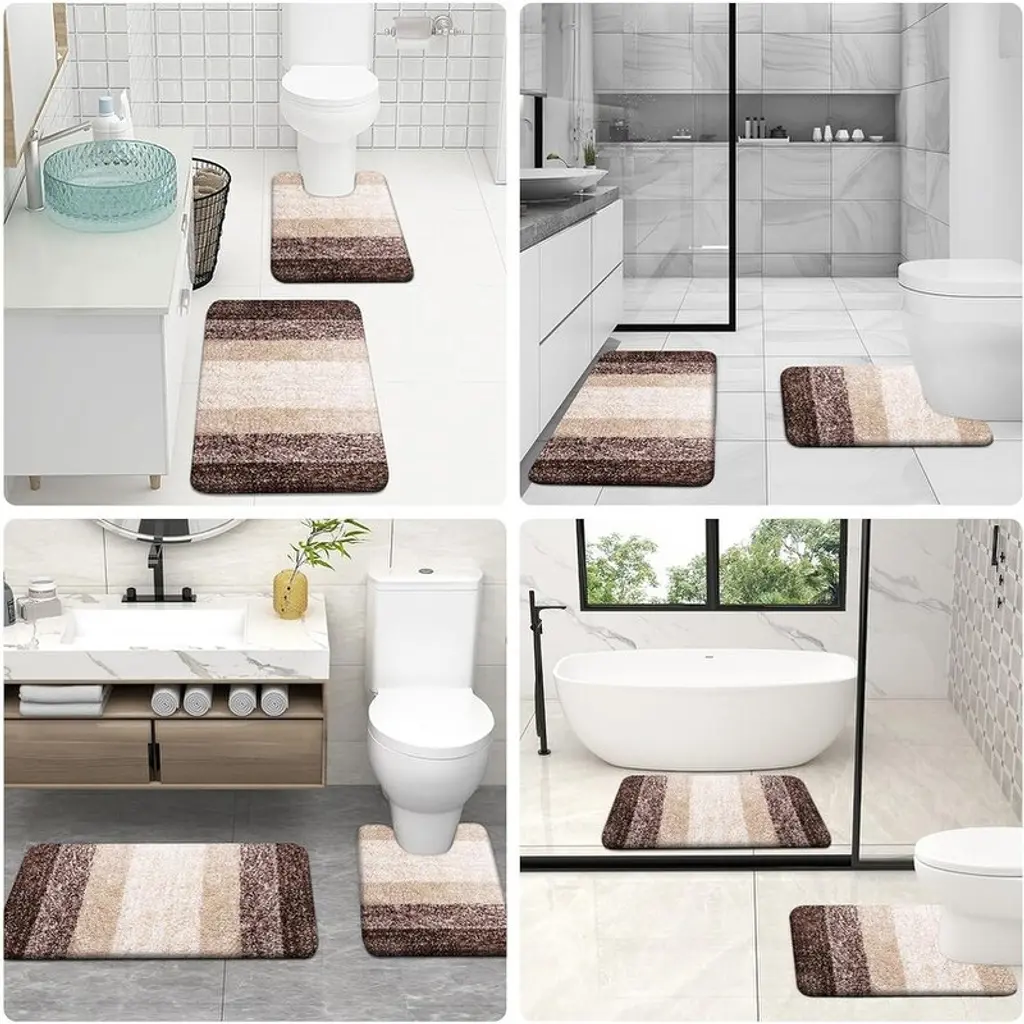 Bathroom Rug Set 2 Piece, Soft Absorbent Microfiber - Brown