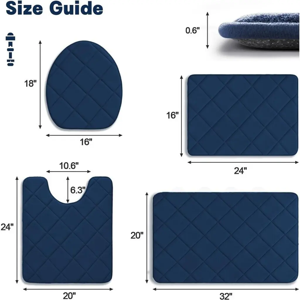 Bathroom Rug Sets 4 Piece, Non Slip Memory Foam - Blue