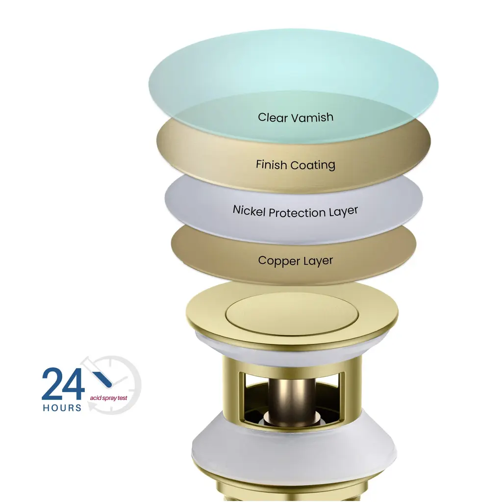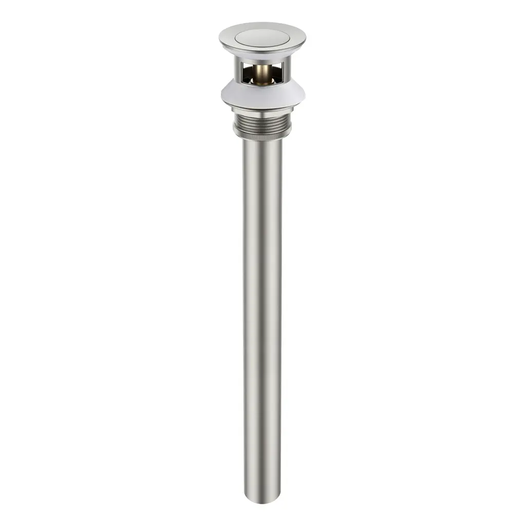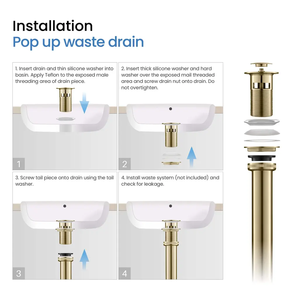 Complete your faucet installation with the Kibi Bathroom Sink Drain with Overflow. This pop-up drain features a 12" b*rass tailpiece and a 1-1/4" connection. -Standard 1-3/4" drain opening: fits sink hole diameter 1-5/8" to 2-5/16". max sink thickness 2".-Ideal for any above-counter vessel sink without an overflow hole.-Guaranteed 50,000 smooth bounce times.-The sturdy b*rass metal structure ensures corrosion resistance, rust prevention, and maximum durability.-Four layers of superior finishes surpass industry durability standards, will not fade over time.-Easy to install: drain, thin rubber washer, thick rubber washer, hard washer, drain nut, the tail piece are all included. please follow the installation guide to ensure no leak.-Limited lifetime warranty for all mechanical parts, 5 years warranty for finishes.