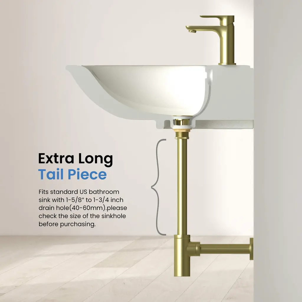 Complete your faucet installation with the Kibi Bathroom Sink Drain with Overflow. This pop-up drain features a 12" b*rass tailpiece and a 1-1/4" connection. -Standard 1-3/4" drain opening: fits sink hole diameter 1-5/8" to 2-5/16". max sink thickness 2".-Ideal for any above-counter vessel sink without an overflow hole.-Guaranteed 50,000 smooth bounce times.-The sturdy b*rass metal structure ensures corrosion resistance, rust prevention, and maximum durability.-Four layers of superior finishes surpass industry durability standards, will not fade over time.-Easy to install: drain, thin rubber washer, thick rubber washer, hard washer, drain nut, the tail piece are all included. please follow the installation guide to ensure no leak.-Limited lifetime warranty for all mechanical parts, 5 years warranty for finishes.