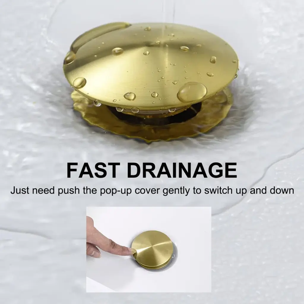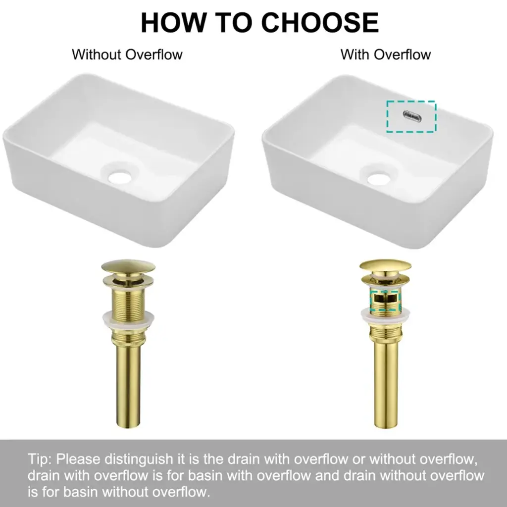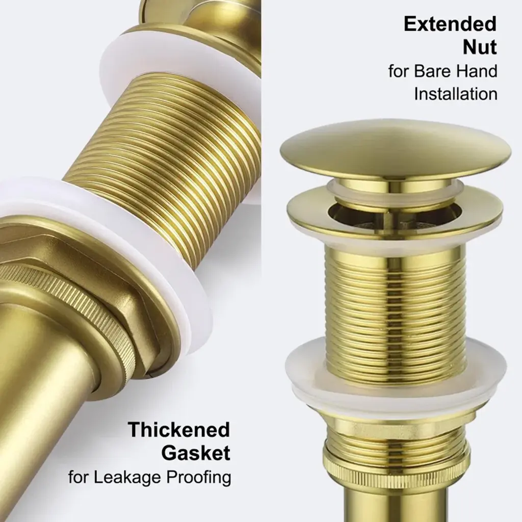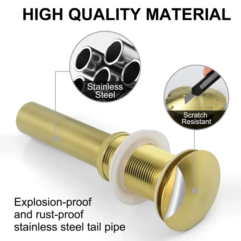 The pop up drain stopper for bathroom sink is made of stainless steel.High-quality finish ensures that the pop up sink drain resists scratches,corrosion and tarnishing,which is rustproof and long-lasting.This bathroom drain fits most vessel or undermount sinks with NO overflow.The high-quality thickened silicone gaskets included fit the drain better.With the 3-piece sealing ring design,our vessel sink drain prevents water leakage more effectively,round cap creats a seamless look in your sink.