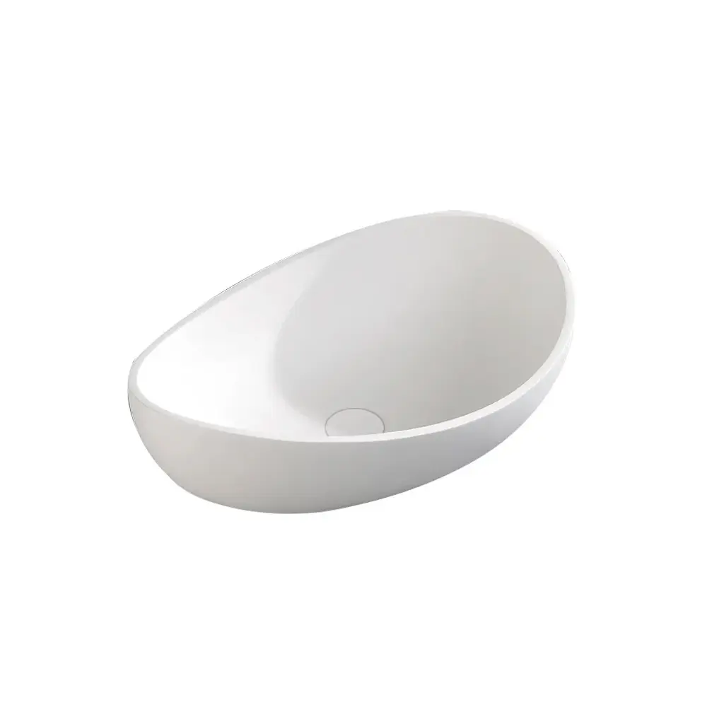 Bathroom Stone Resin Oval Vessel Sink Modern Art Sink Glossy White With Pop Up Drain