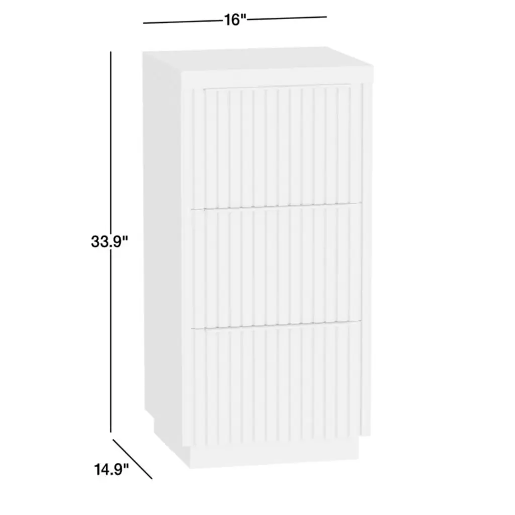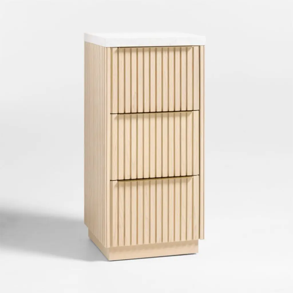Batten 16" White Oak Wood And Marble Bath Storage Tower With 3 Drawers