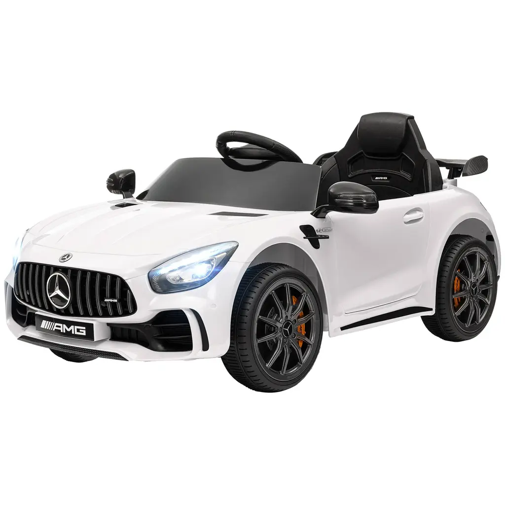 Description:This kids' electric car is a licensed Mercedes-Benz AMG GTR replica, designed to provide an exciting and realistic driving experience. The 12V battery-powered vehicle comes with a remote control, allowing parents to take over the driving if needed. It features transport wheels for easy movement, a soft start function for a smooth take-off, and three speeds to suit different driving preferences. The car also has lights, music, and a horn, adding to the fun and entertainment. With its sleek design and high-quality construction, this electric car is perfect for kids aged 3-6 years. It offers a safe and enjoyable way for children to explore their surroundings and develop their driving skills. Whether it's for indoor or outdoor use, this Mercedes-Benz AMG GTR replica is sure to bring hours of joy and excitement to your little ones.