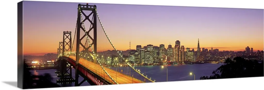 Bay Bridge San Francisco CA wall art for home and office decor. Discover canvas art prints, photos, mural, big canvas art and framed wall art in GreatBigCanvas.com's varied collections.