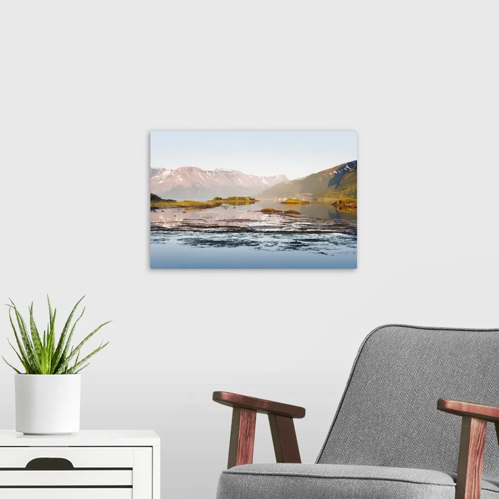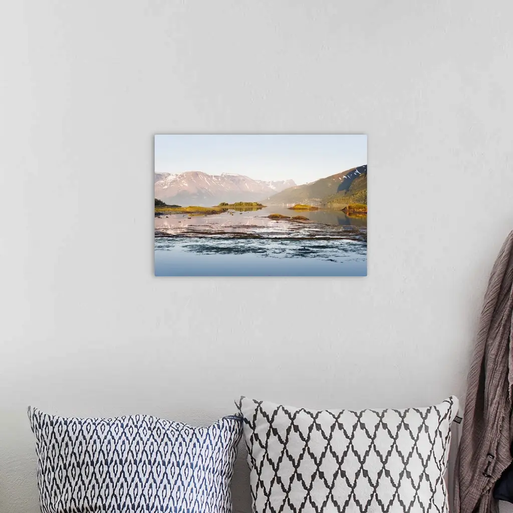 Bay, by the Lyngen fjord, Solvik Gard, Lyngseidet, Lyngen Alps, region of Lyngen, County of Troms, Norway, Northern Europe