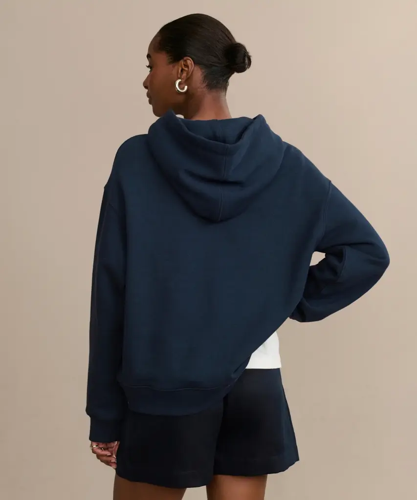 Bay Hoodie Navy The relaxed hoodie of your dreams has arrived. Fashioned from ultra-luxe brushed fleece, the Bay Hoodie is the perfect addition to your cozy wardrobe.