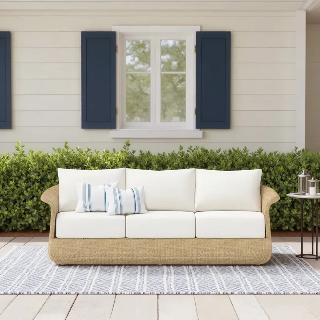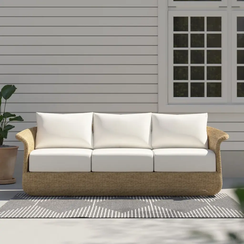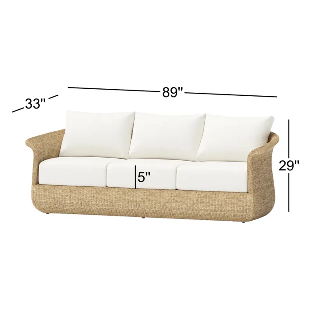 Transform your outdoor space into a serene haven with this 3 Person Wicker Sofa with Cushions. This stylish patio sofa, boasting dimensions of 33" deep, 89" wide, and 29" high, offers generous deep seating perfect for lounging in comfort. Its beautifully rounded arms add an elegant touch to its chic wicker frame, creating an inviting aesthetic that fits effortlessly into any outdoor décor. Crafted for enduring durability, this sofa is UV resistant, water resistant, and weather resistant—meaning it can withstand whatever nature throws its way while still looking fabulous. Best of all? No assembly required! Simply place it in your favorite spot and get ready to relax in luxury and style.