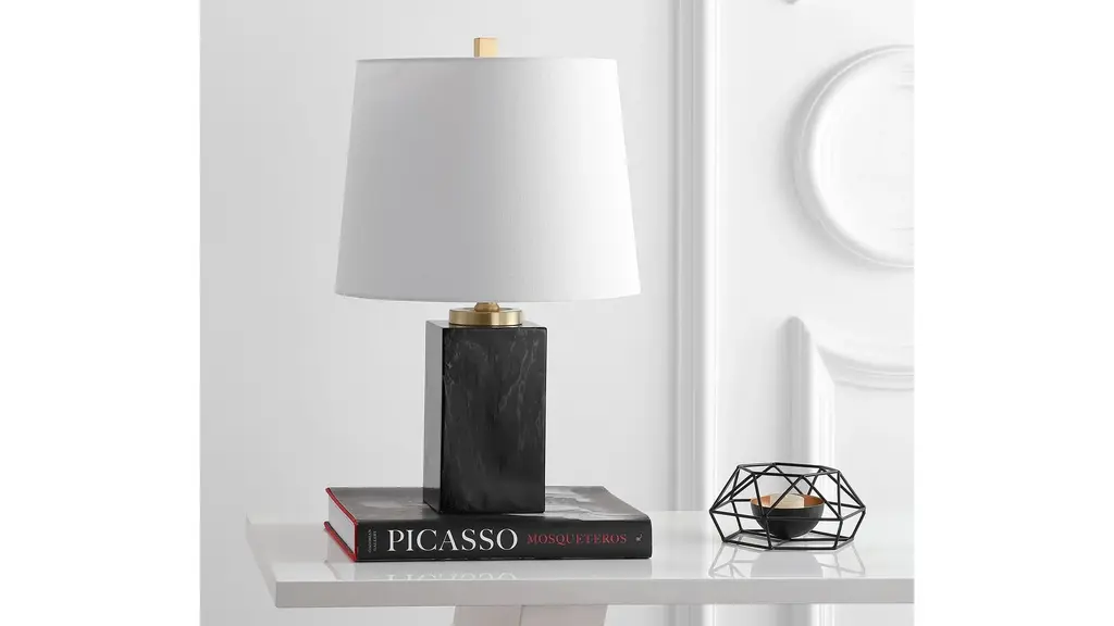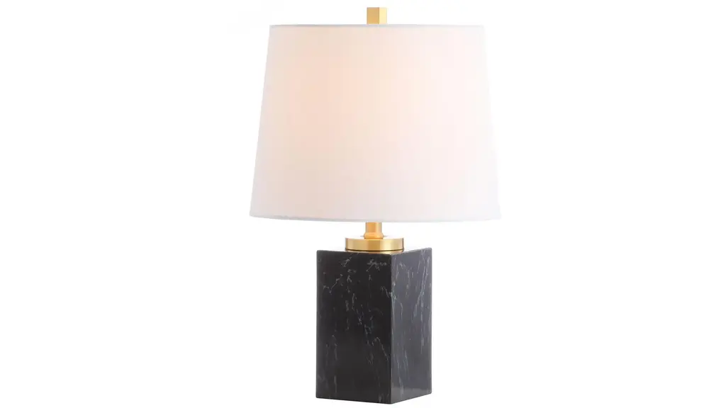 Bold and beautiful, this contemporary Baylor Table Lamp adds luxurious style to any living room. Designed with the timeless elegance of a dramatic black marble finish, its brass gold foundation shimmers underneath an off white cotton shade.
