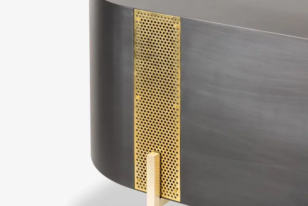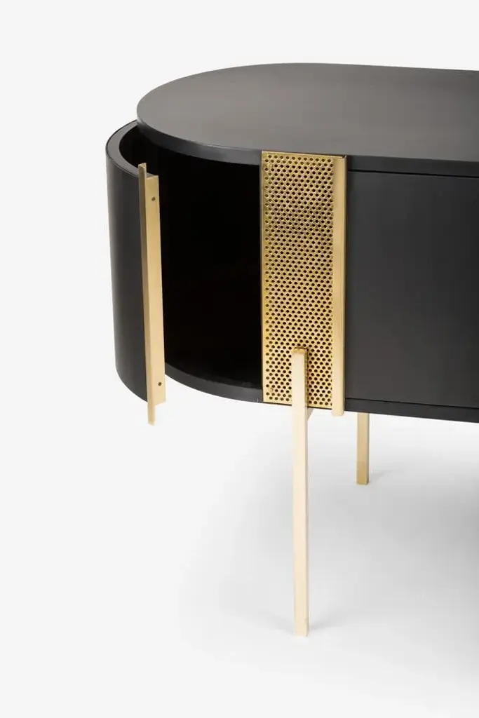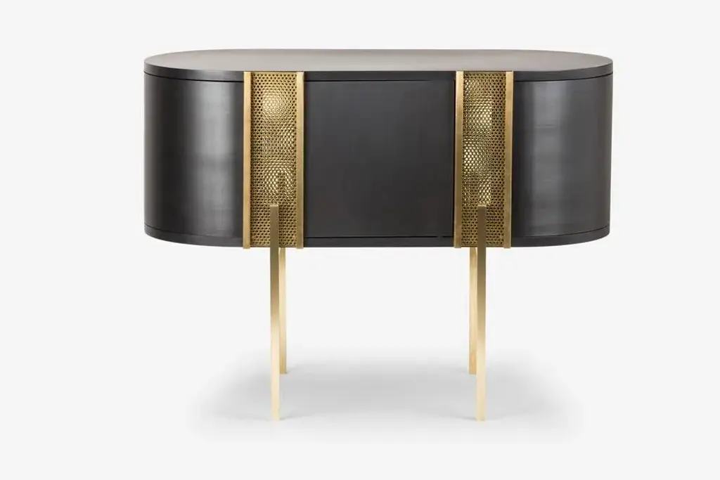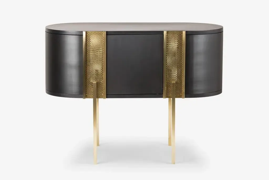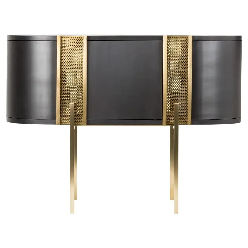 Be-Lieve Console Normal by Mingardo. Dimensions: D110 x W50 x H80 cm. Materials: Varnished iron structure and brass. Weight: 60 kg. Also available in different finishes and dimensions. Decorative and, at the same time, essential, the enclosing console designed by Lorenza Bozzoli is a timeless piece of furniture. The line is sinuous and compact, and the style brings back to a rich and glorious past. Nets give mystery and grace to this product, where noble materials such as brass and iron are finished with galvanic surface treatments and proposed in unedited colors. Made entirely by hand, Be-Lieve is a work of craftsmanship and virtuosity. Mingardo Ilario founded Mingardo Blacksmith Workshop in 1970 after over twenty years of experience in the metal processing field. The production was initially focused on simple blacksmith works for the construction industry. Over time, it has become more refined, enabling the company to collaborate with internationally renowned companies and architects, from the first collaborations with architect Carlo Scarpa to the more recent commissions for Museo del Novecento in Milan, Parco della Musica in Florence and Teatro Petruzzelli in Bari. Over the years, the Workshop has achieved great results with the production of unique metal products, all hand-wrought by a highly skilled team of specialized artisans. Nowadays, it is highly regarded in the local artisan field for its high-end, refined finishing touches and details and for its know-how