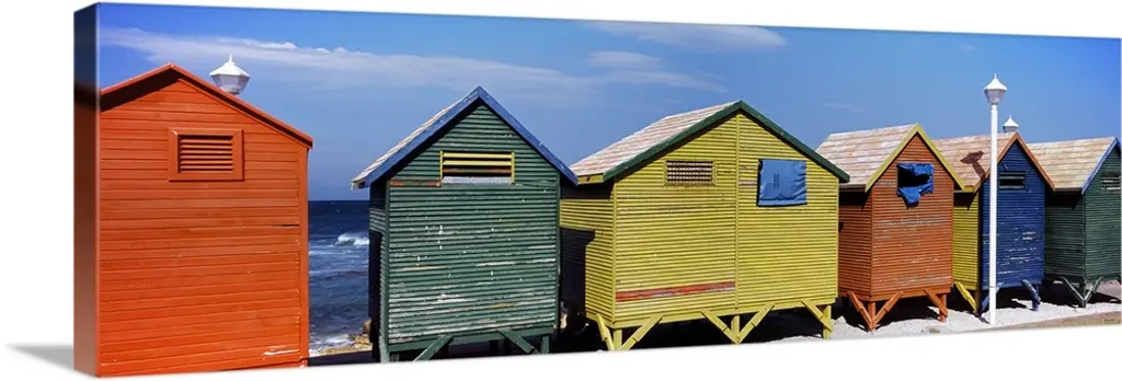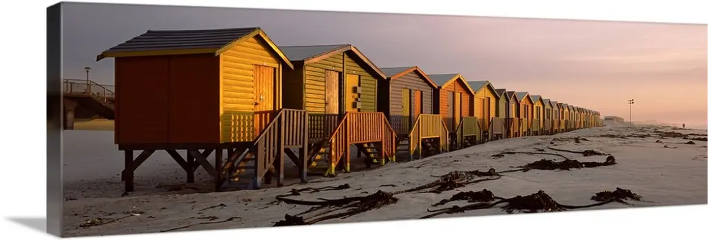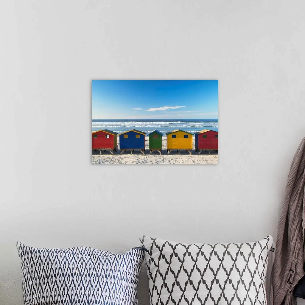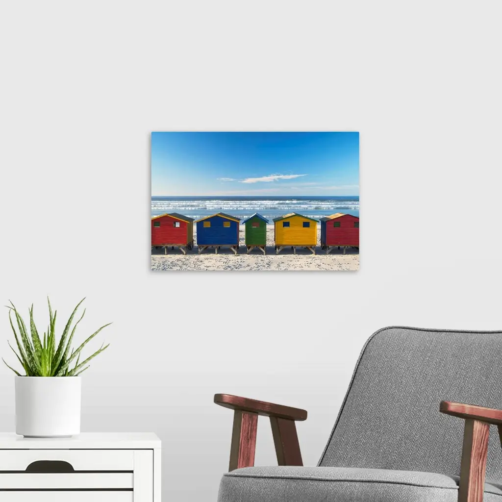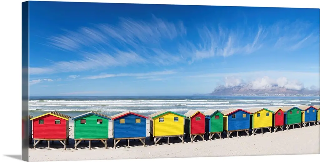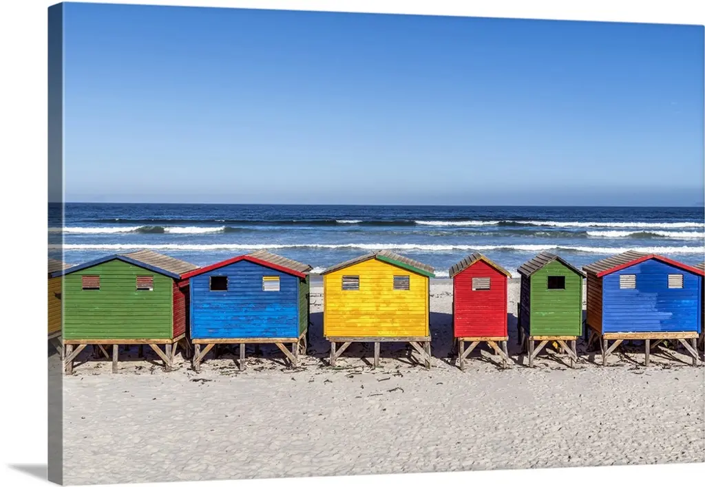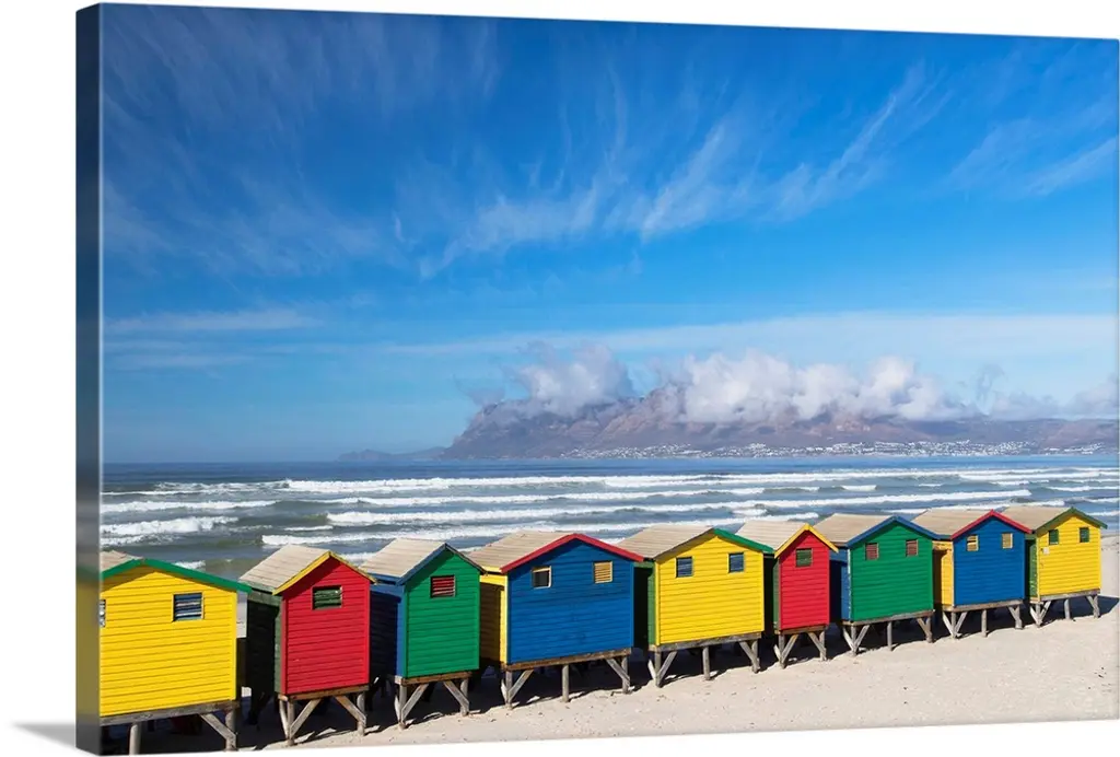 Beach huts on Muizenburg beach, Cape Town, Western Cape, South Africa