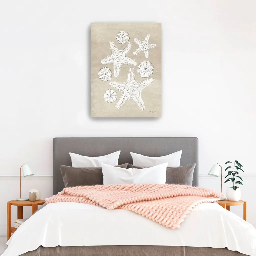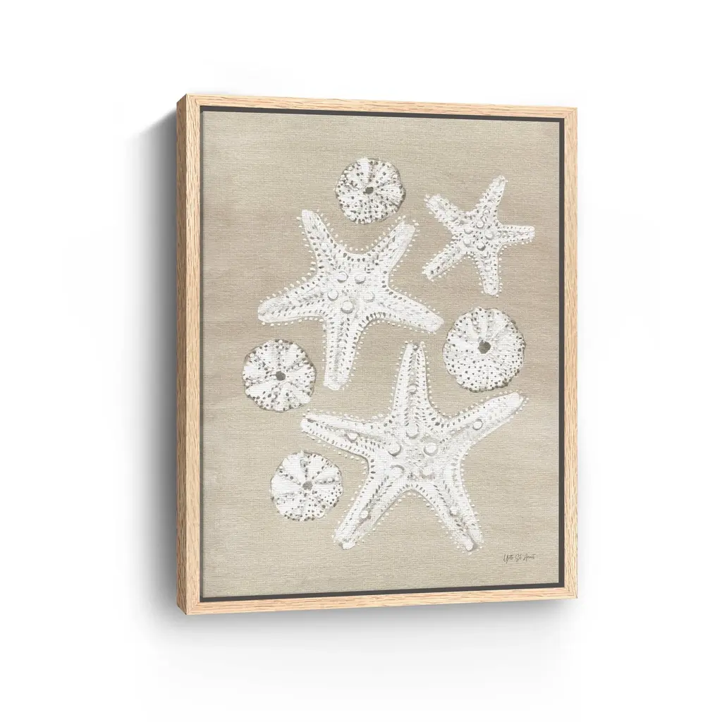 Bring the beauty of the ocean into your home with this enchanting canvas art print, featuring an array of delicate sea shells that evoke the tranquility of coastal living. The soft, soothing colors and intricate details create a serene atmosphere, making it a perfect addition to any space.Available in black frame, dark walnut frame and oak frames, or as a frameless canvas. Our Gallery Wrap Canvas Prints are proudly assembled with high quality materials in California, USA. Each piece is printed on a thick, archival grade canvas using Giclee technology. It is then hand-stretched by our experienced artisans over solid pine bars, which will not warp over time. The final product is a piece personally crafted for you to confidently display on your wall. Care and Assembly: Ensure that the location of your piece has little to no exposure to heat, sunlight, and moisture. Wipe clean, only if needed. Each piece includes a sawtooth hanger to hang on your wall vertically.