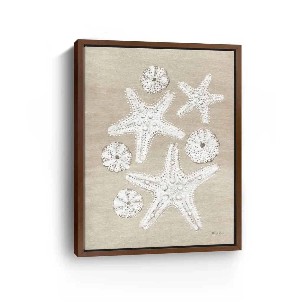 Bring the beauty of the ocean into your home with this enchanting canvas art print, featuring an array of delicate sea shells that evoke the tranquility of coastal living. The soft, soothing colors and intricate details create a serene atmosphere, making it a perfect addition to any space.Available in black frame, dark walnut frame and oak frames, or as a frameless canvas. Our Gallery Wrap Canvas Prints are proudly assembled with high quality materials in California, USA. Each piece is printed on a thick, archival grade canvas using Giclee technology. It is then hand-stretched by our experienced artisans over solid pine bars, which will not warp over time. The final product is a piece personally crafted for you to confidently display on your wall. Care and Assembly: Ensure that the location of your piece has little to no exposure to heat, sunlight, and moisture. Wipe clean, only if needed. Each piece includes a sawtooth hanger to hang on your wall vertically.