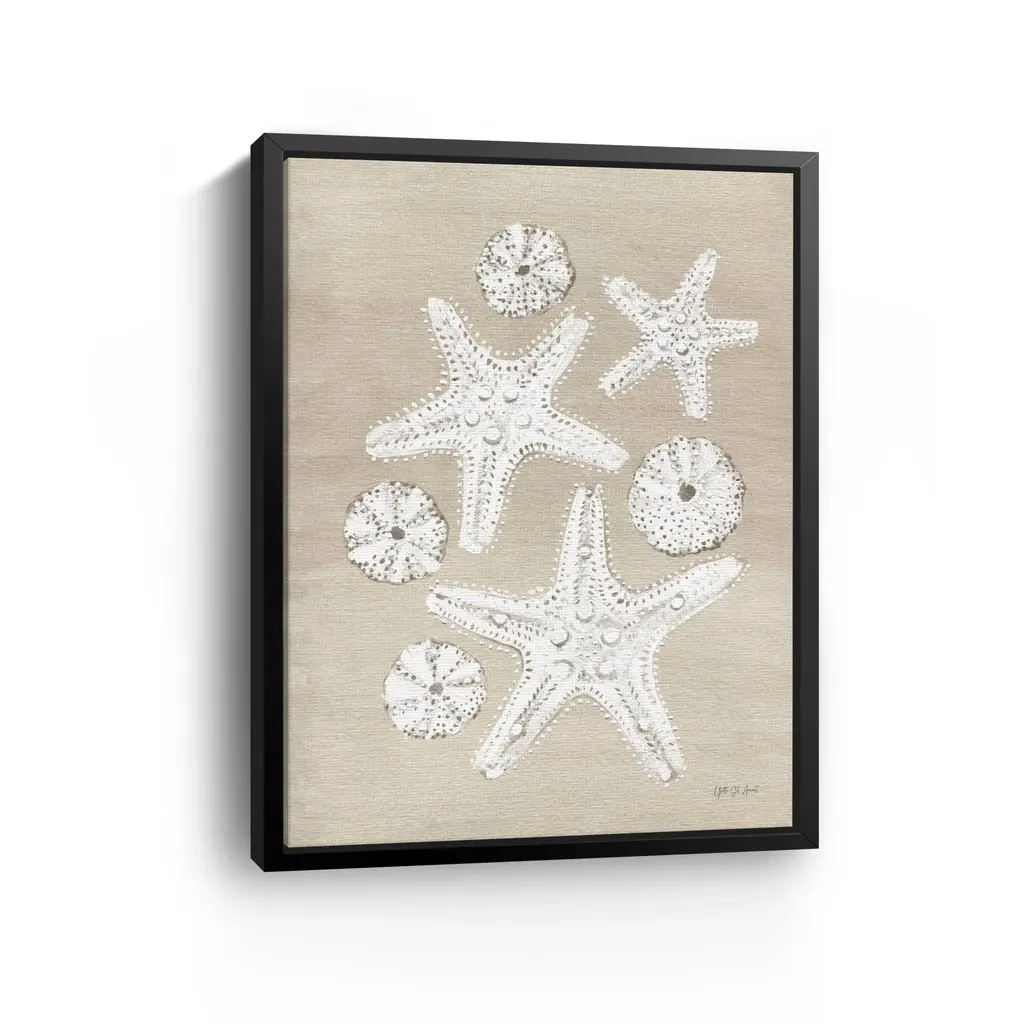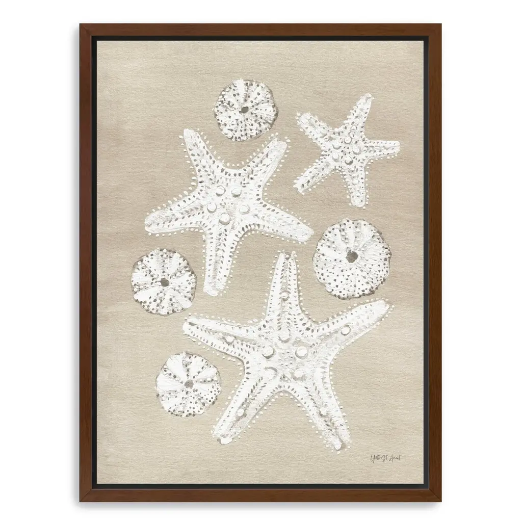 Bring the beauty of the ocean into your home with this enchanting canvas art print, featuring an array of delicate sea shells that evoke the tranquility of coastal living. The soft, soothing colors and intricate details create a serene atmosphere, making it a perfect addition to any space.Available in black frame, dark walnut frame and oak frames, or as a frameless canvas. Our Gallery Wrap Canvas Prints are proudly assembled with high quality materials in California, USA. Each piece is printed on a thick, archival grade canvas using Giclee technology. It is then hand-stretched by our experienced artisans over solid pine bars, which will not warp over time. The final product is a piece personally crafted for you to confidently display on your wall. Care and Assembly: Ensure that the location of your piece has little to no exposure to heat, sunlight, and moisture. Wipe clean, only if needed. Each piece includes a sawtooth hanger to hang on your wall vertically.