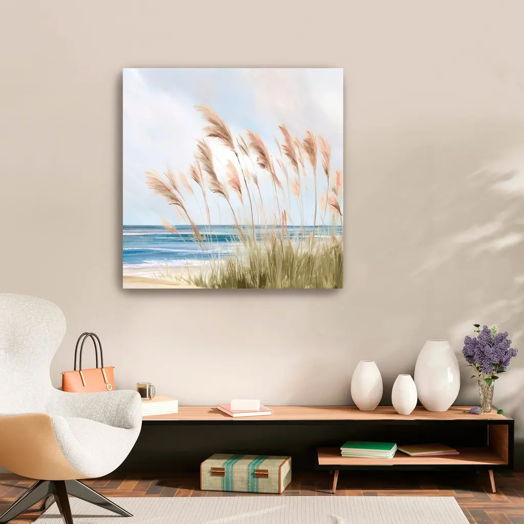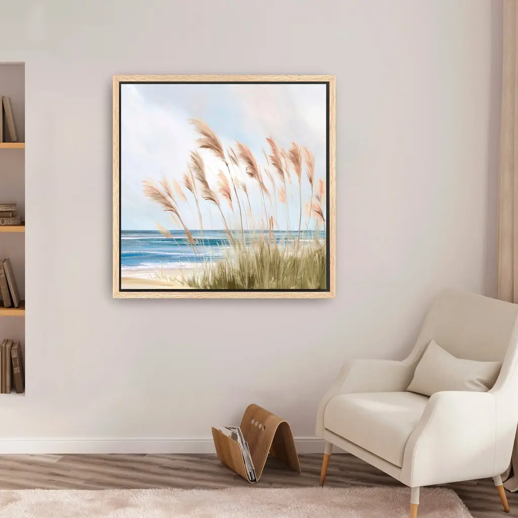 Beach Pampas Canvas Giclee - Framed / Dark Walnut / 30x30