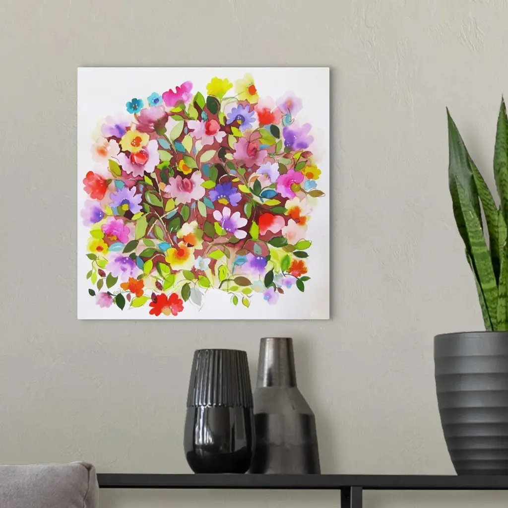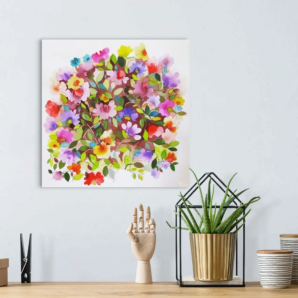 A series of flowers and leaves in warm colors and a soft style against a white background.