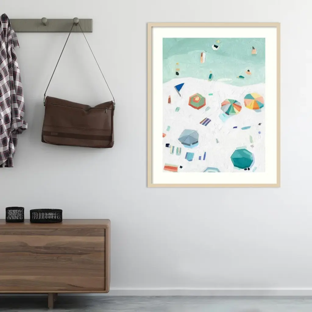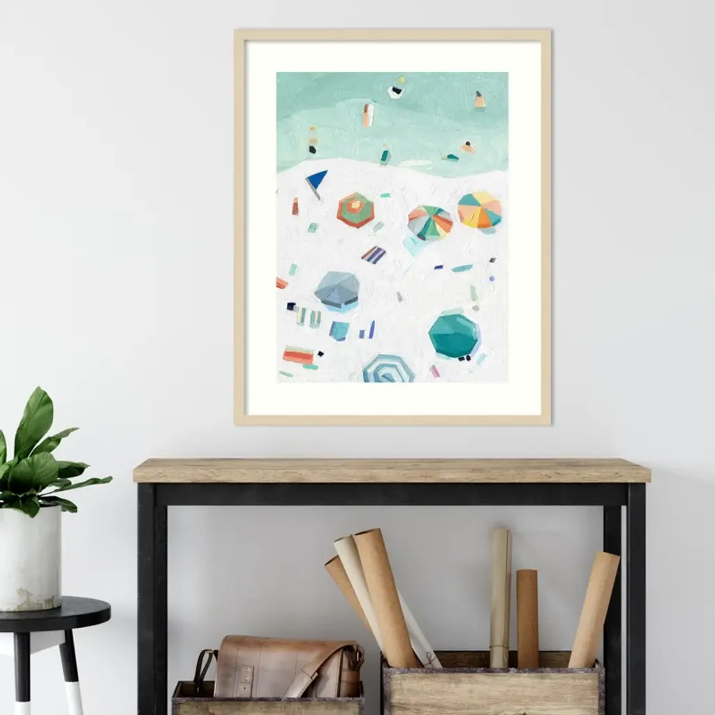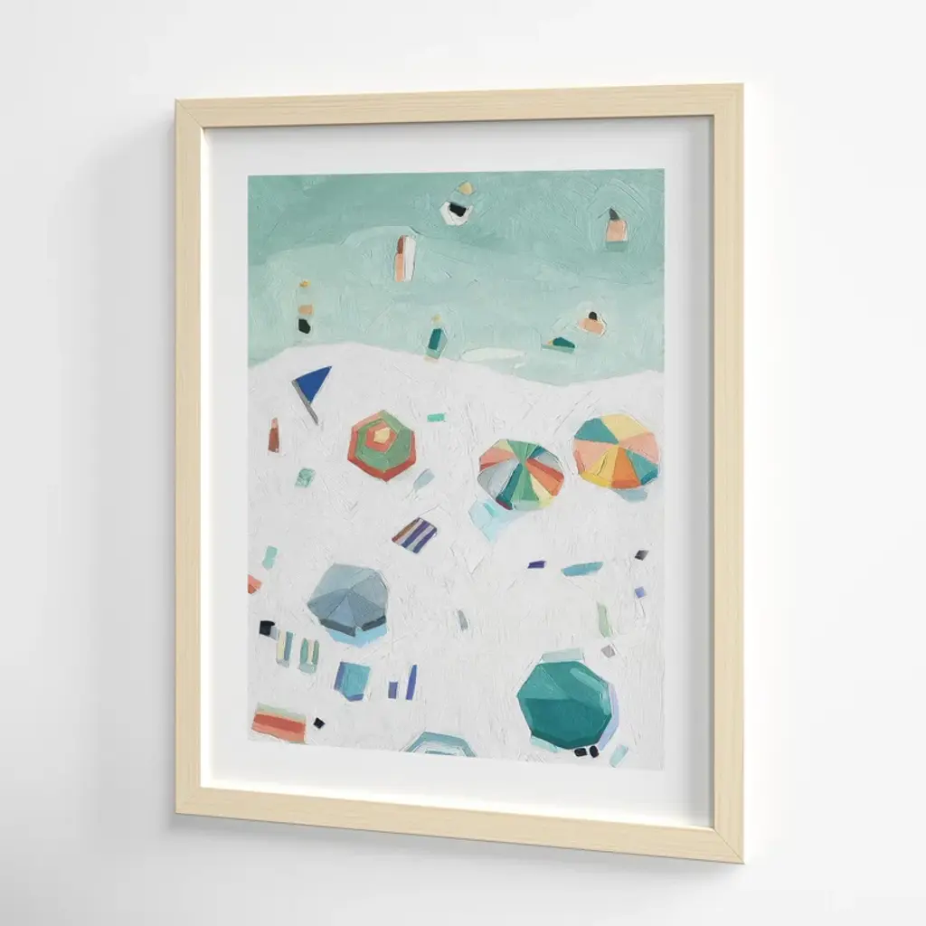 Bring the beach to your walls. This framed wall art showcases a serene seaside scene in cool acrylic hues. The open corner wood frame adds a modern touch, while the portrait orientation creates a statement. Perfect for adding a touch of nature to your space.