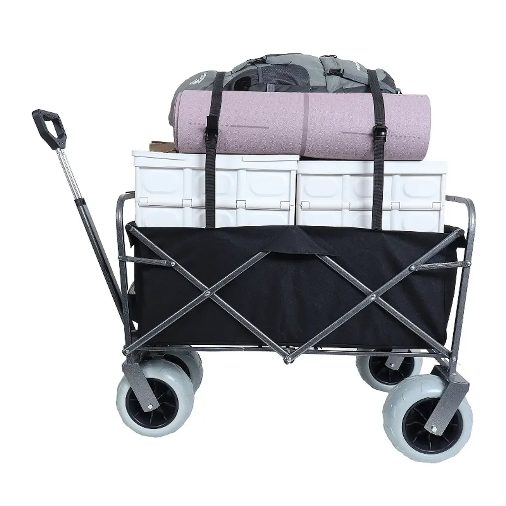 Beach Wagon With Big Wheels For Sand 500lbs Capacity - All Terrain Steel Frame Utility Cart W/ 9" Pneumatic Tires, Collapsible Folding Design, Strap