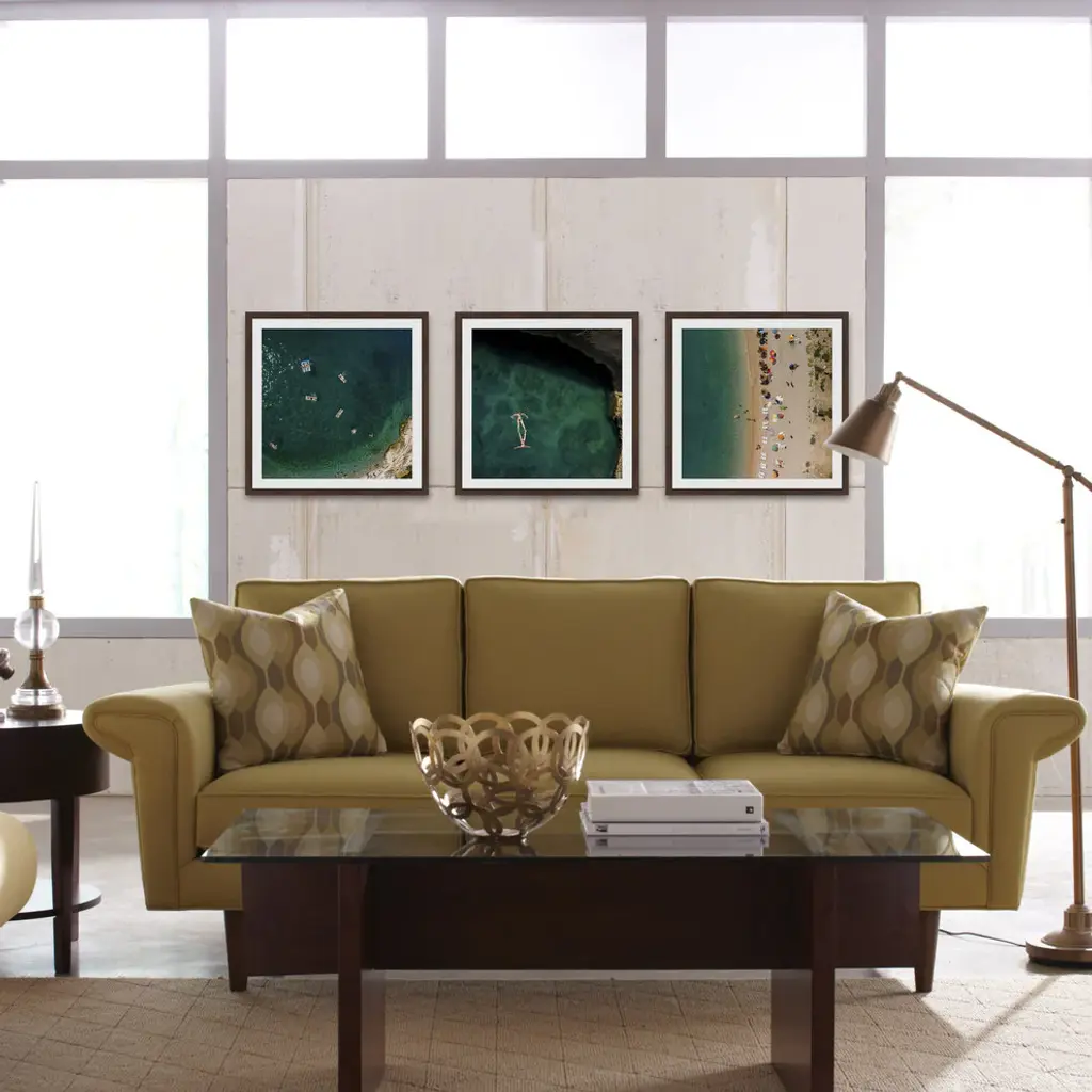- (3) panels of 12x12- Top quality Giclee print on high resolution Archive Paper- Professionally framed and mounted on acid free archive matte- High quality durable non-warping frame- Arrives ready to hang- Includes a certificate of authenticity- Made in the USA