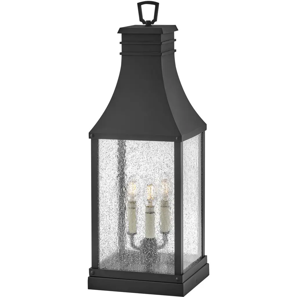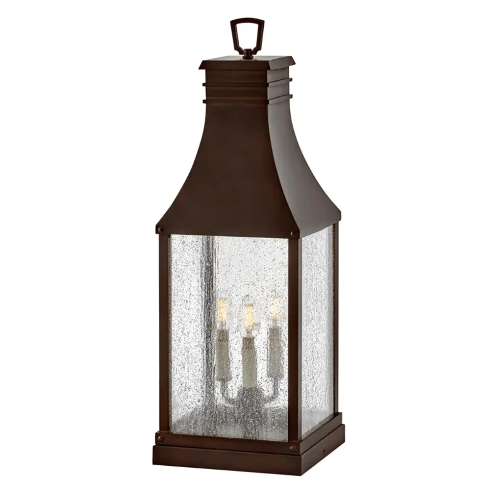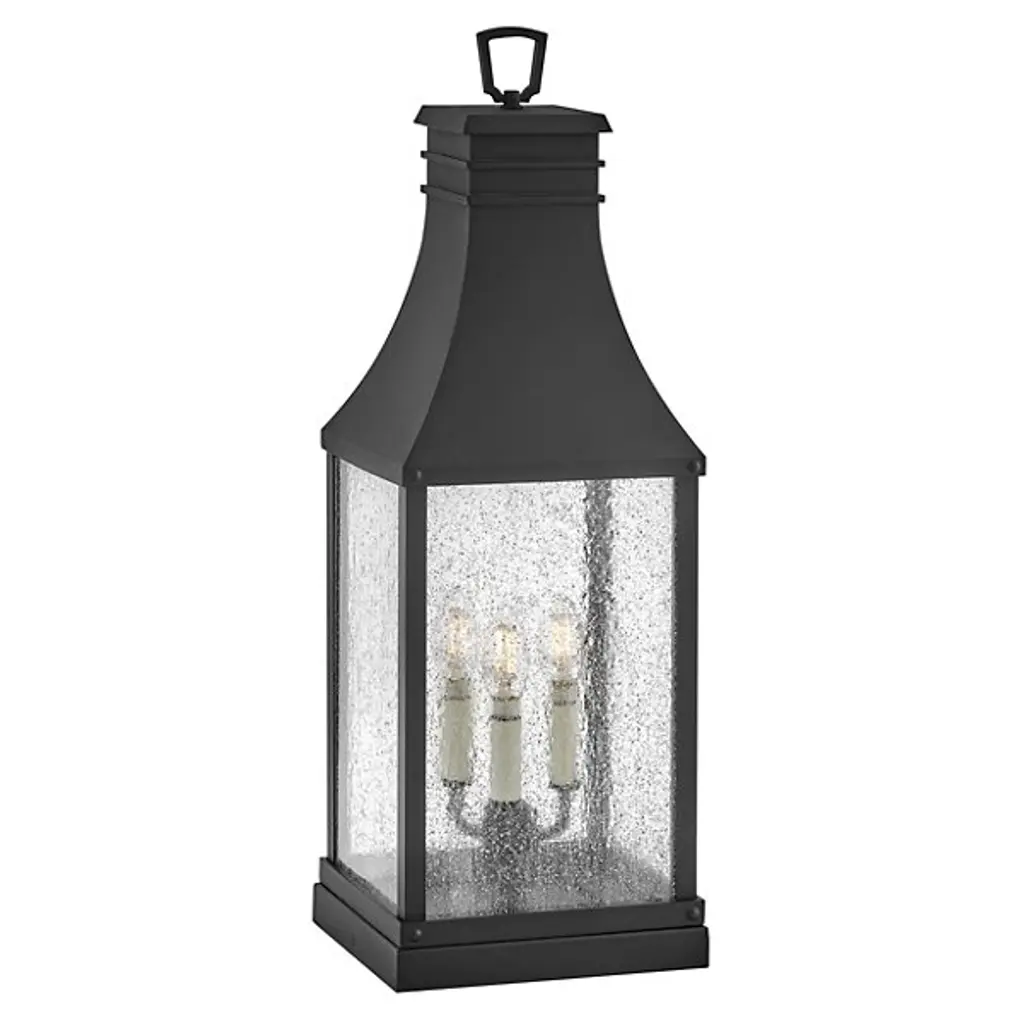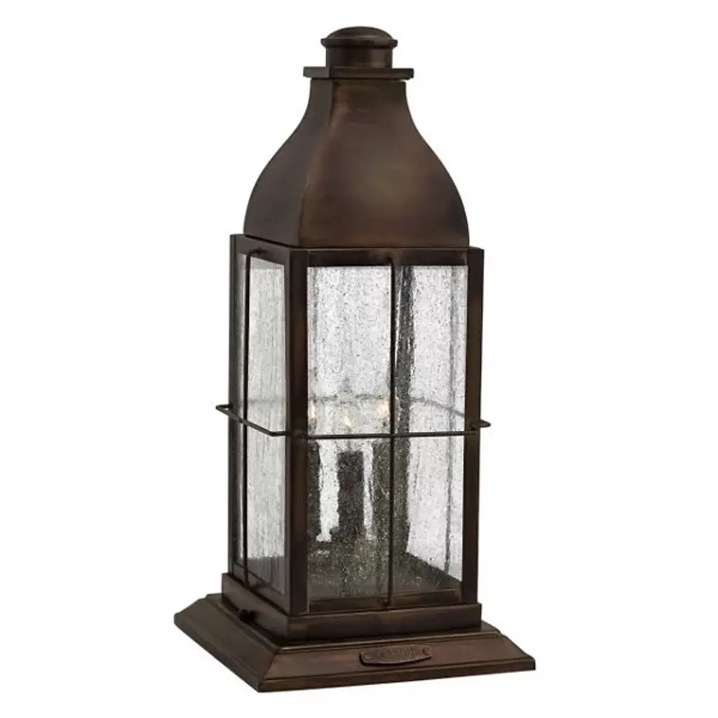 Handsomely structured and finished with a farmhouse-inspired vibe. Presented by Hinkley Lighting, the Beacon Hill Rectangular Pier Mount is a transitional piece of lighting design that is suitable for any weather condition, which allows it to be of use both indoors and outdoors. It also features seedy clear glass panes that diffuse the illumination from within; this is a lighting option that will elevate the space it occupies with enlightened design.