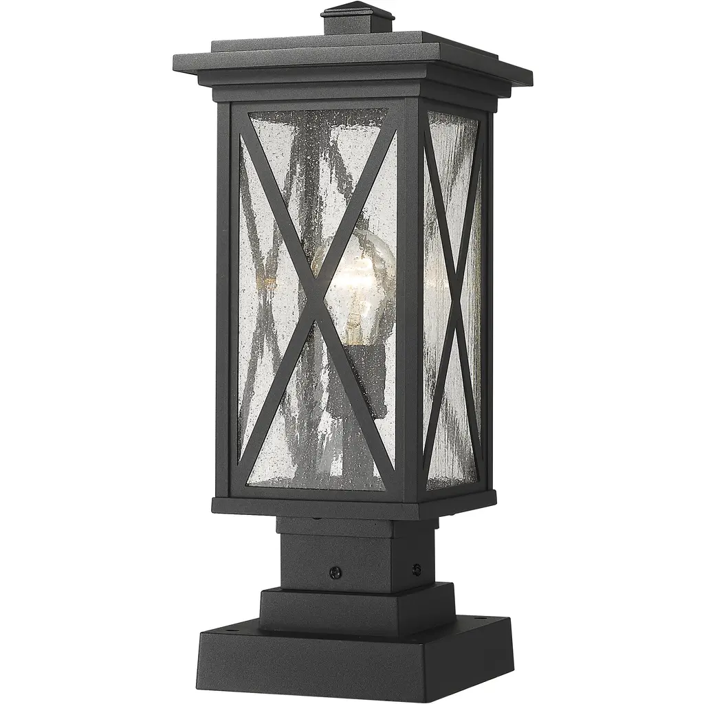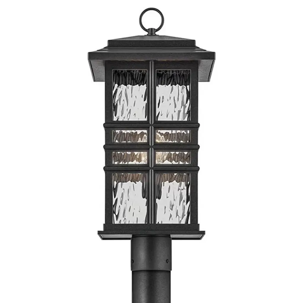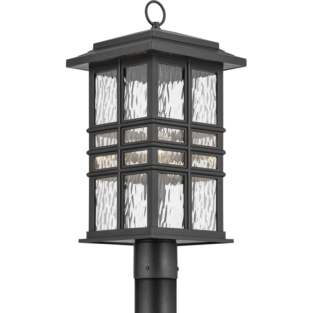 The Beacon Outdoor Post Light by Kichler will guide your outdoor pathways with elegant design and durable construction. This craftsman-inspired lantern features a clear hammered glass shade that resembles the surface of water. The inner incandescent bulbs bounce light delicately across the glass as it emits warm ambient illumination. The lantern’s frame is comprised of material designed to withstand extreme weather conditions and corrosion from elements like UV rays and saltwater spray for a lasting addition to your outdoor décor.