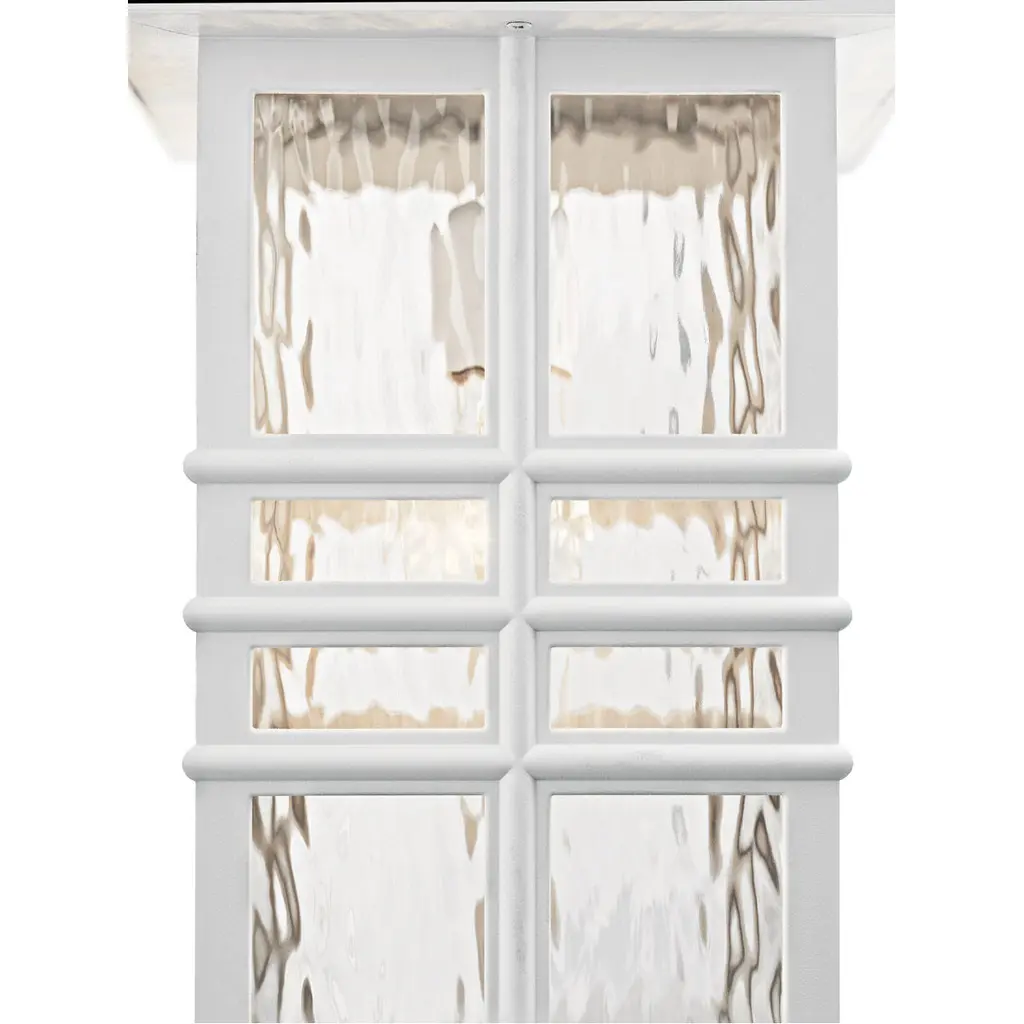 Inspired by classic craftsman architecture, This Beacon Square 17.5 inch 1 light outdoor wall lantern's clean lines deliver a transitional and versatile style. Crafted from Kichler's Climates materials, each fixture is designed to withstand harsh outdoor elements, like saltwater spray and UV rays, for a beautiful and long-lasting White finish. The clear, hammered glass simulates the look of water, enhancing the overall style, while still letting the light shine through.