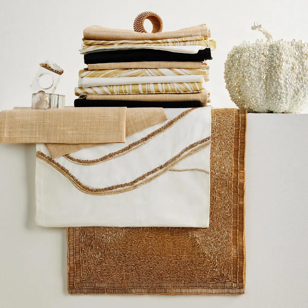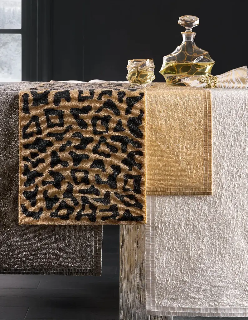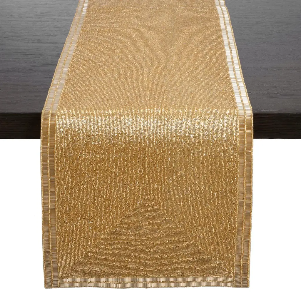 Add an understated elegance to your table setting as you lay the foundation for your tablescape. This runner provides a neutral backdrop for your dinnerware, while glass beads and a metallic finish give just enough sparkle to dress it up. Z Gallerie exclusive