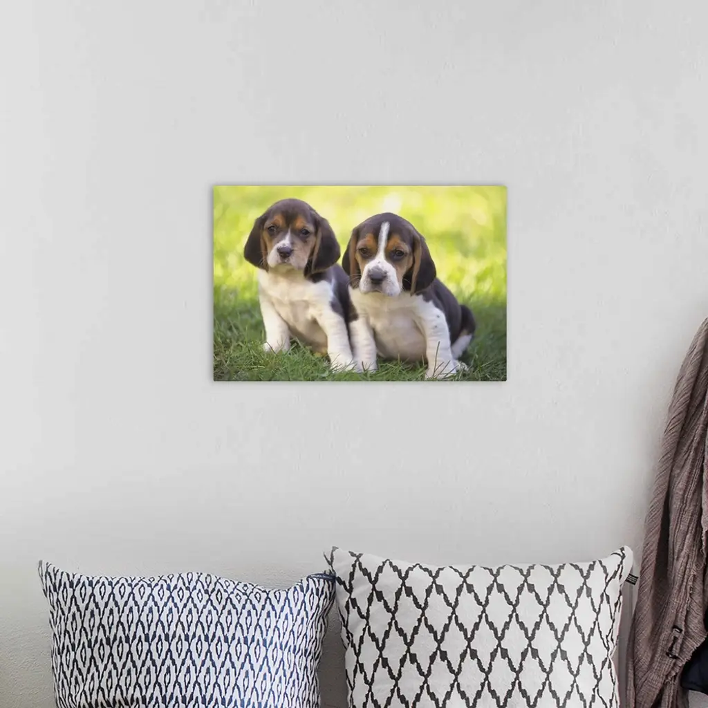 A Beagle is a medium-sized dog breed and a member of the hound group, similar in appearance to a Foxhound but smaller with shorter legs, and with longer, softer ears. Beagles are scent hounds used primarily for hunting rabbits to larger hares.