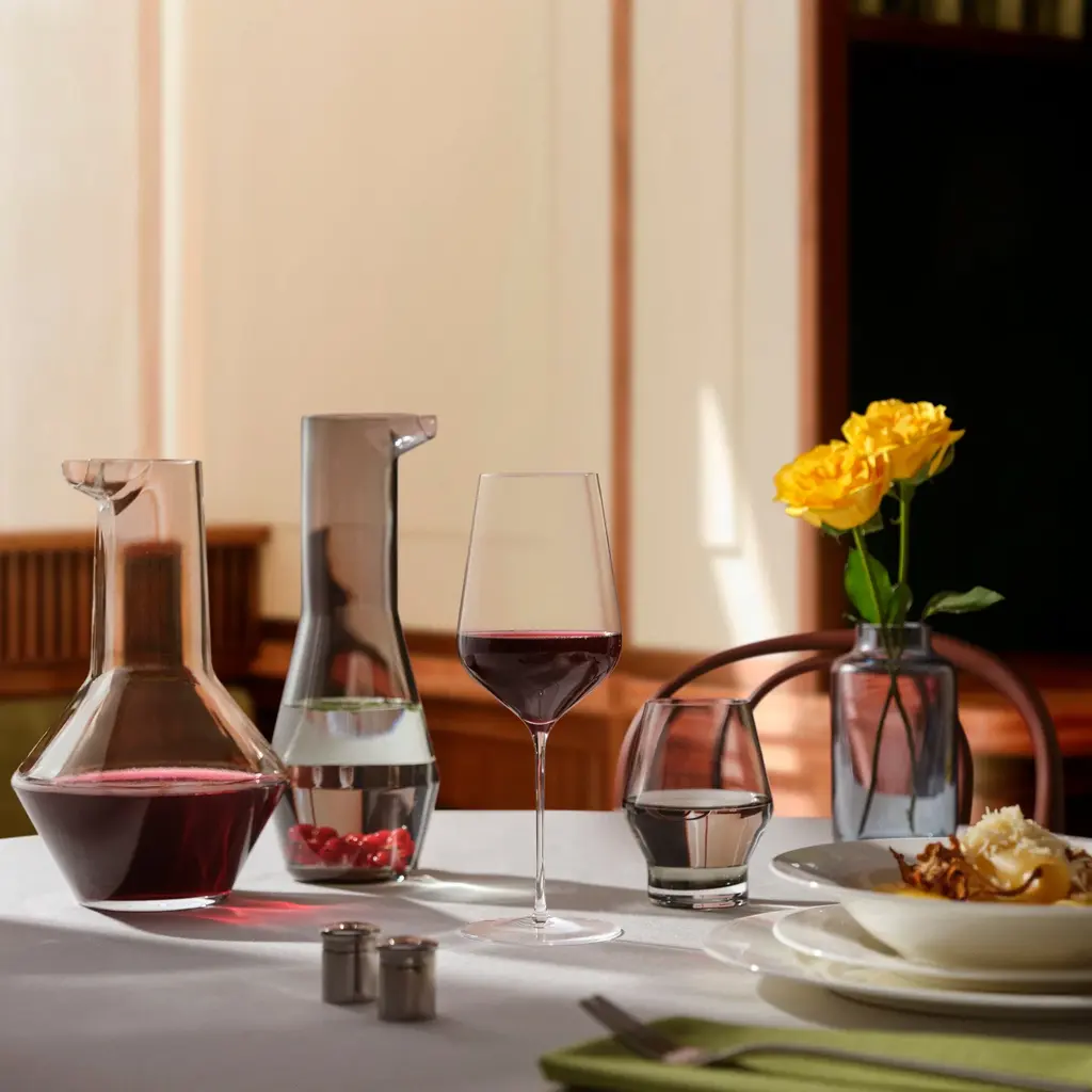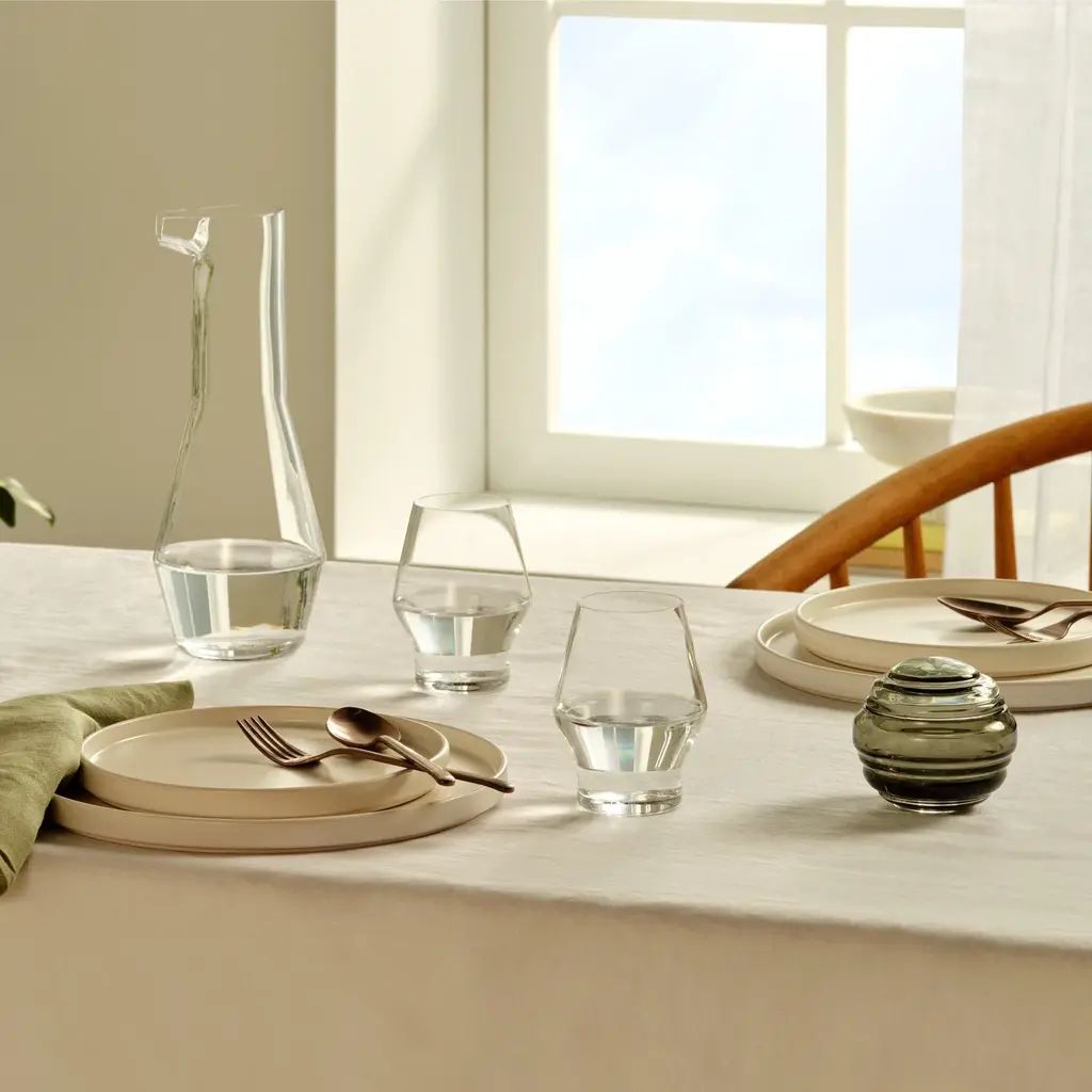 Elevate your dining experience with the Beak Glass (Set of 2) from NUDE. Inspired by the graceful shape of a bird's beak, these lead-free crystal glasses exude elegance and precision. Paired with the matching carafe, this angular silhouette achieves a perfectly balanced harmony. Elevate your table setting to a whole new level of sophistication. Highlights
