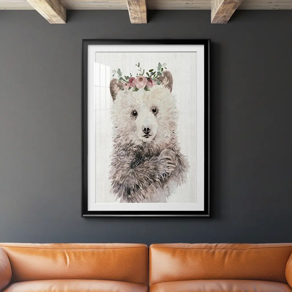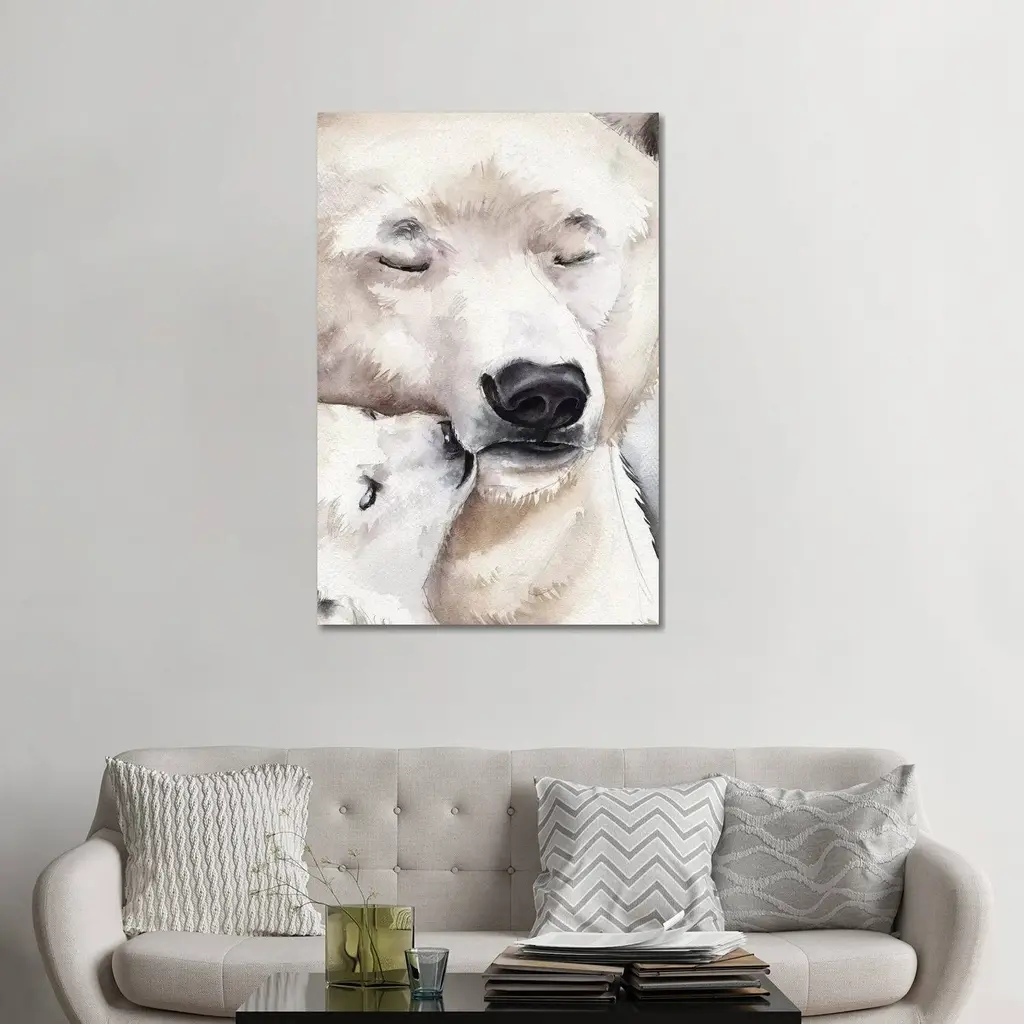 Bear And Cub Family Grey Stripe Nursery Illustration,1pc, Each 16 X 20