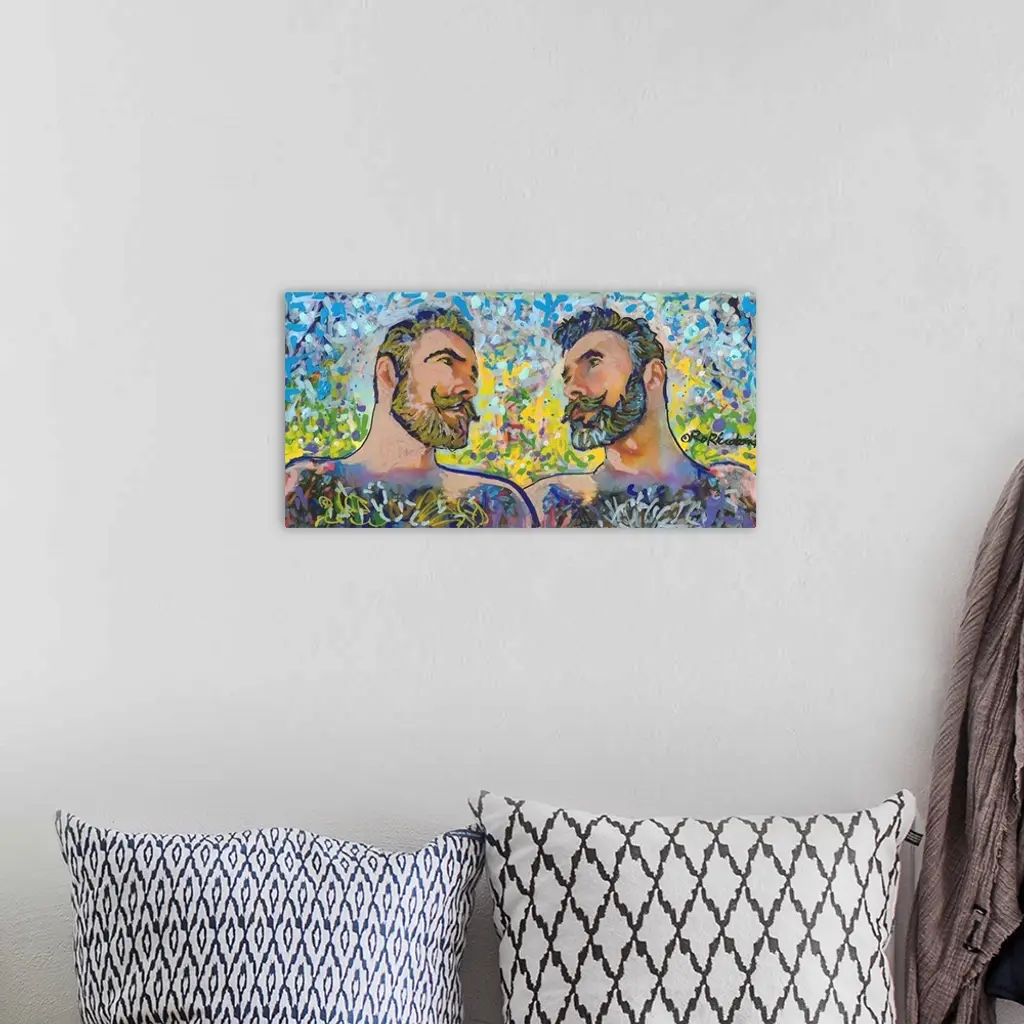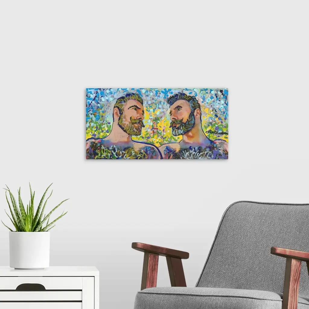 Bear Squared by RD Riccoboni. Picture of two handsome burly men in the artist bright signature color palette.