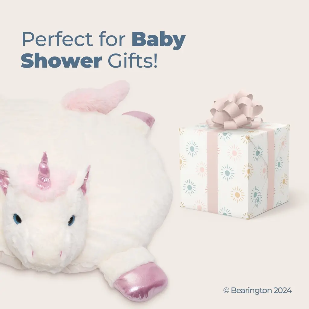Introducing the Bearington Baby Dreamer Baby Play Mat, a delightful 30 x 30 inch White and Pink Unicorn Plush Stuffed Animal Blanket, perfect for your little princess. This enchanting unicorn-themed play mat is not just a blanket; it's a versatile accessory tailored to the needs of newborns and infants, serving as one of the most cherished girl baby blankets. Crafted with the utmost care and attention to detail, this silky baby blanket for girls offers both comfort and stimulation for babies aged 0-6 months. Its plush unicorn design adds a touch of whimsy to any nursery, making it a cherished keepsake and an ideal newborn baby blanket for girls. The Bearington Baby Dreamer Baby Play Mat doubles as a baby tummy time blanket, encouraging healthy development and strengthening of your baby's neck and upper body. This lamb blanket baby is not just a baby animal play mat; it's a unicorn tummy time mat, sparking your little one's imagination with its captivating design. Designed for the little princess in your life, this unicorn playmat is the perfect addition to any nursery decor. It pairs beautifully with unicorn crib sheets for baby girls, creating a magical haven for your baby girl to rest and play. This unicorn blanket baby also doubles as a belly mat for baby, ensuring your little one's comfort during bonding moments. The Bearington Baby Dreamer Baby Play Mat is the epitome of style and functionality for new parents. It's not just a unicorn blanket baby; it's a princess blanket for baby girls, a unicorn tummy time mat, and a versatile baby play mat, all rolled into one. Provide your baby with the best in comfort, play, and style with this exceptional addition to your nursery.