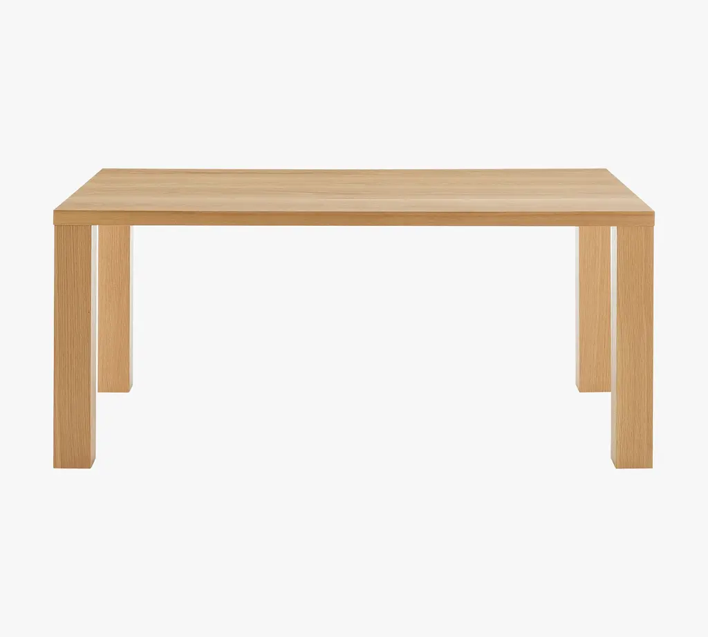 Butcher block style and a natural finish have modern simplicity and a laid back look. A lightweight honeycomb wood construction makes moving the table easy, and a durable veneer makes double duty as an oversized workspace just as easy.