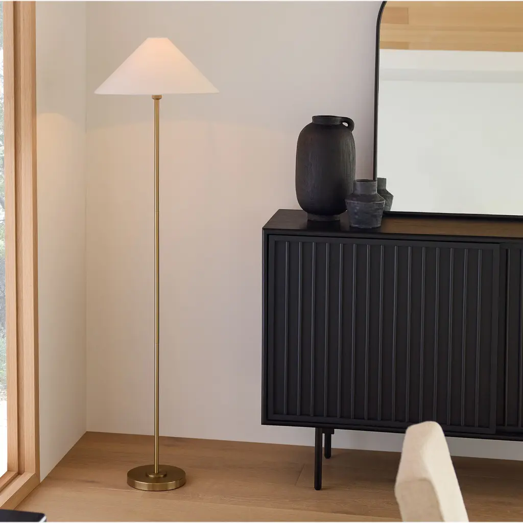 A fresh take on a traditional architectural design. Tapered linen shade for modern proportions. Makes a chic statement next to a chair or sofa. Contract Grade, so you know it's built to last.
