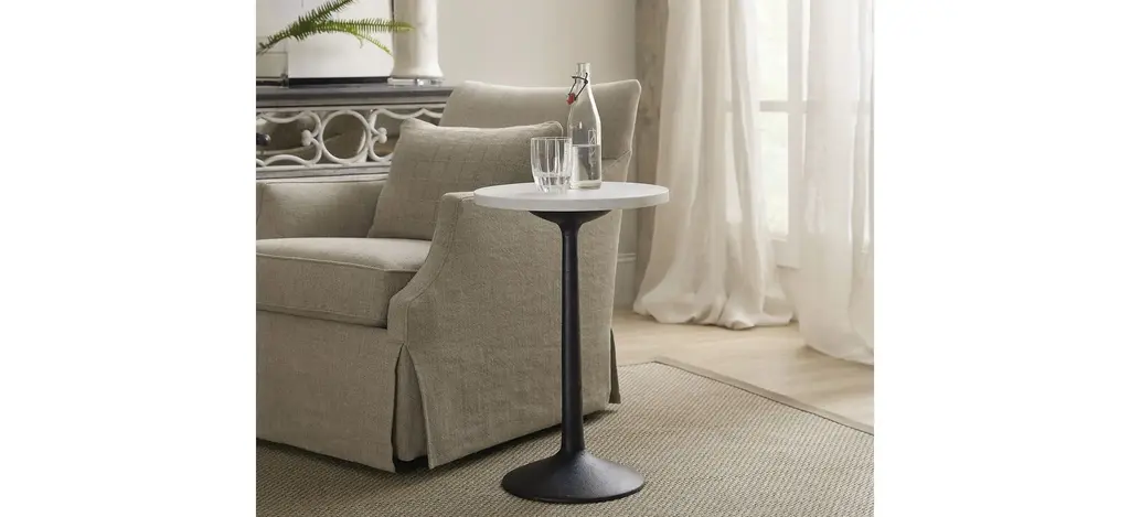Punctuate any chairside with authentic vintage charm. The Beaumont martini table combines a cast iron base with a sandblasted, waxed marble top and features an alluring color palette of white, creams, beiges and iron.