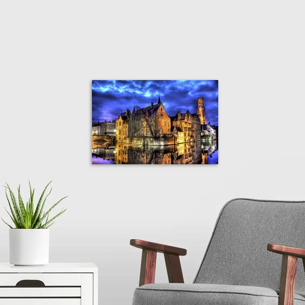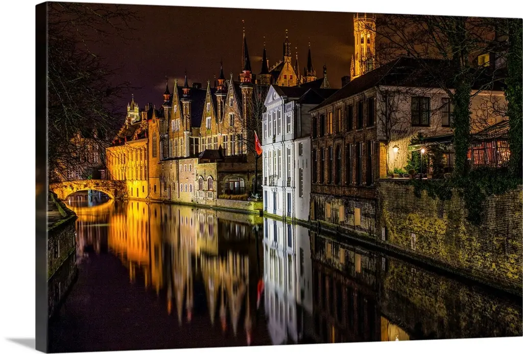 A fantastic view point of the Belfry tower in Bruges and the canal.