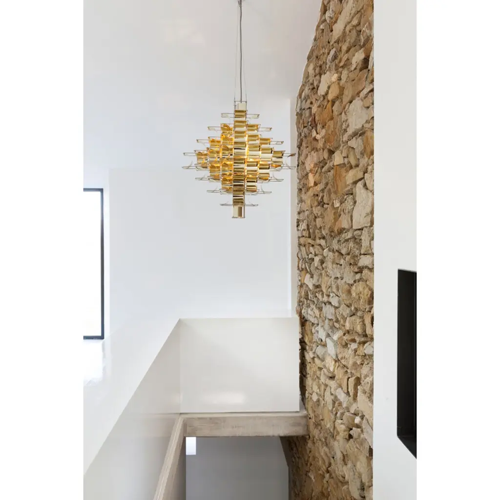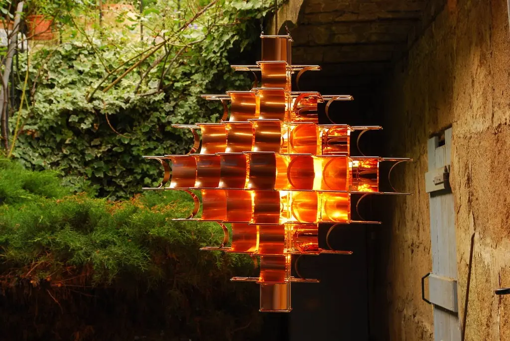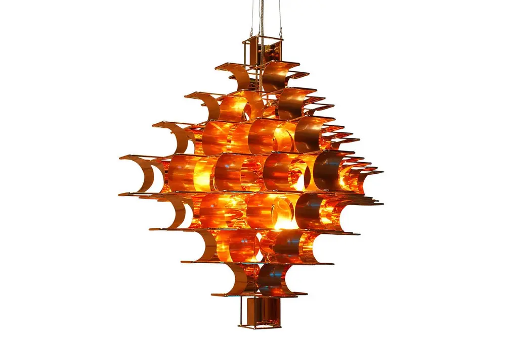 This beautiful lighting creation of Sauze exist also in 95 cm, it is also available.It exists in various colors (Silver, cop, gold, salmon).Materials: Copper, Gold ColorMax Sauze is one of the most important French designer of the 20th century. Max Sauze: French Visual artist, was born in 1933. He first attended the Ecole des Beaux Arts in Alger between 1953 and 1956, and then went on to study at the famous Ecole Camondo in Paris (1956-1959). During the early 1970s, Max Sauze quickly established his own immediately recognizable style through the construction of bent aluminium strips on steel wire structures. Max Sauze, works on the multiplication of form. From a base which is replicated out in all dimensions, the structure takes form referencing the process of life. Through simplification, removal of the superfluous, his work is a return to what is deemed essential. He is today recognized internationally for his design creations.
