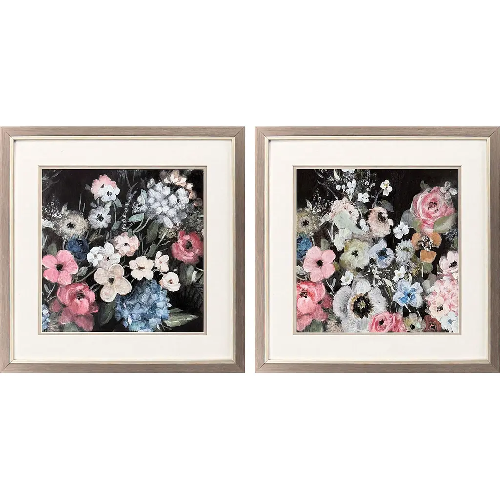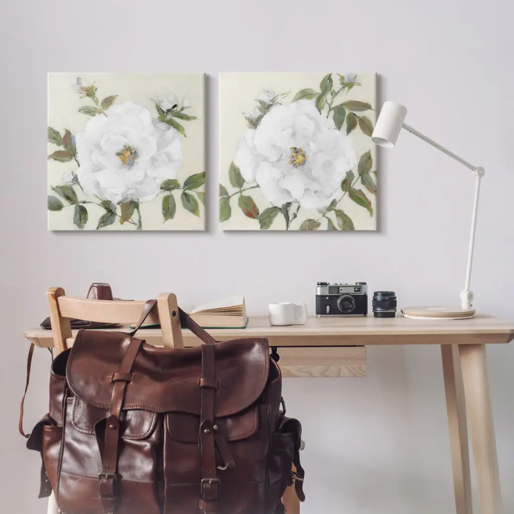 Beautiful Classic Painted Flower With Green Leaves, 2Pc, Each 24 X 24
