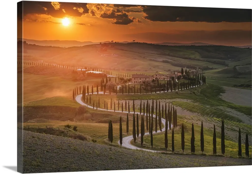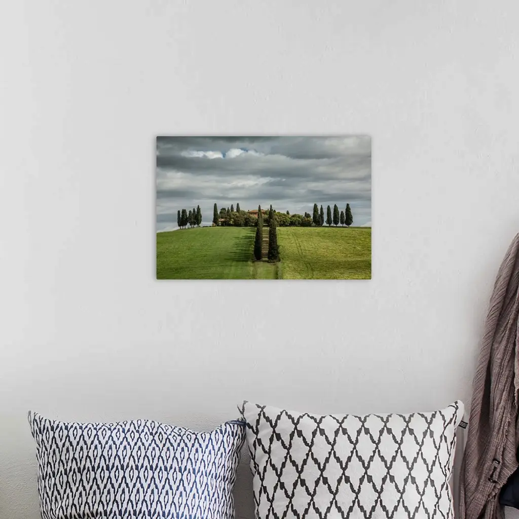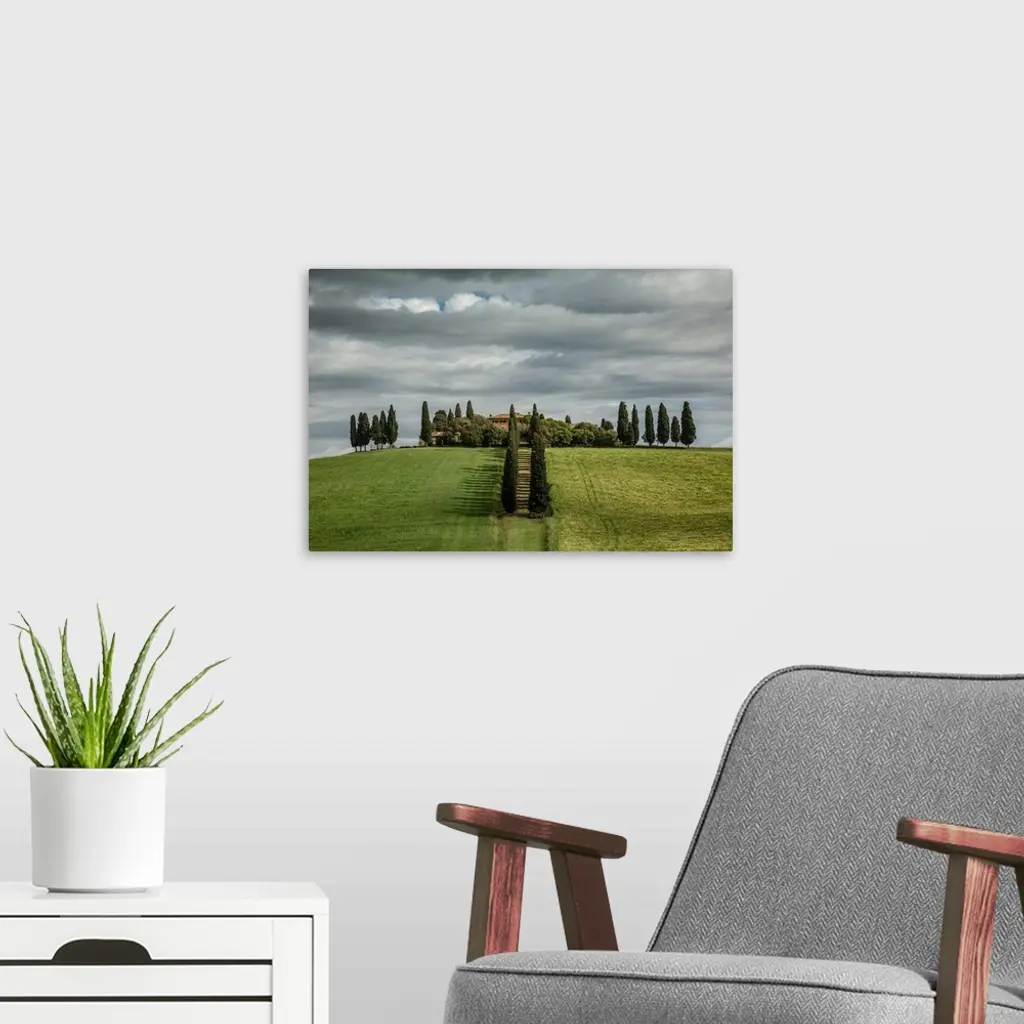 Beautiful Home And Italian Cypress Trees In Tuscany