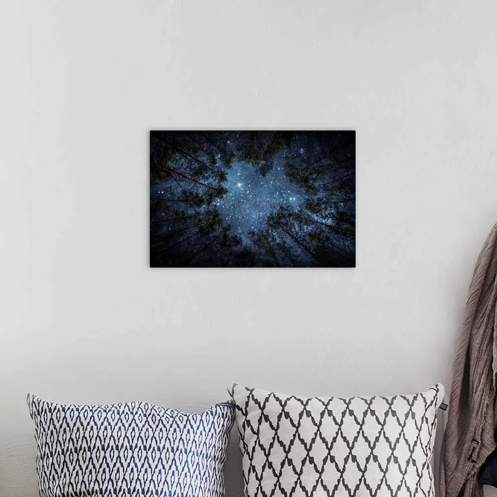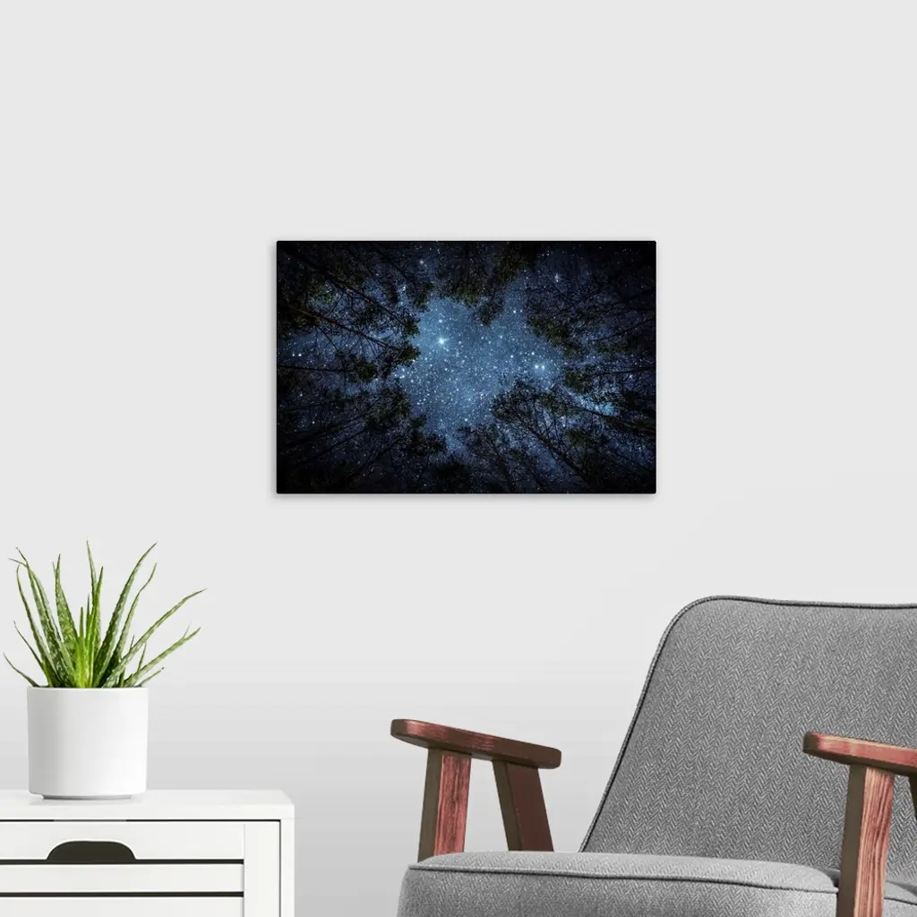 Beautiful night sky, the Milky Way and the trees. Elements of this image furnished by NASA.