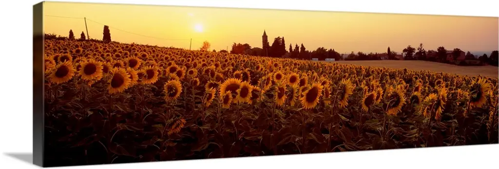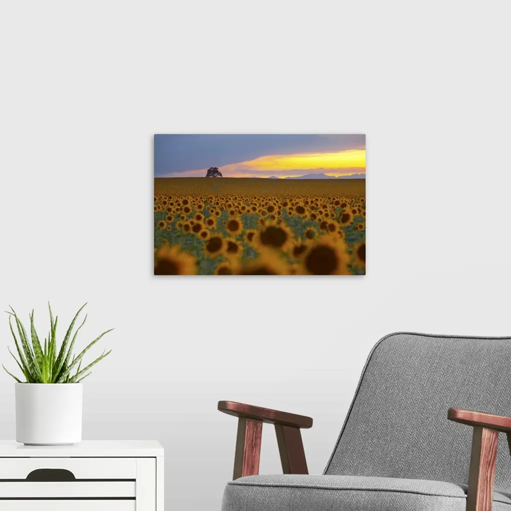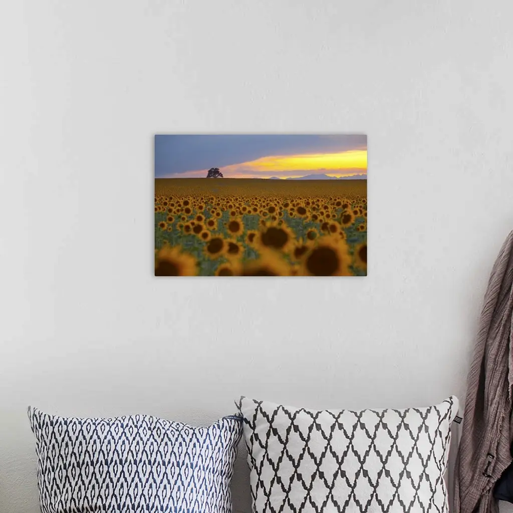 Beautiful sunflower field in Colorado at sunset. wall art for home and office decor. Discover canvas art prints, photos, mural, big canvas art and framed wall art in GreatBigCanvas.com's varied collections.