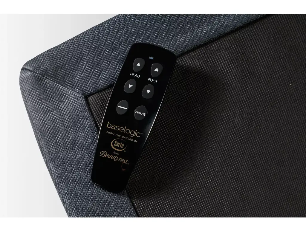 Beautyrest® Baselogic Silver adjustable power base offers an affordable sleep and lounge solution. Featuring head and foot adjustability, a zero-gravity preset, and a one-touch flat preset controlled by an easy wireless remote. The adjustable height legs and zero-clearance design makes it compatible with most traditional bed frames and platform beds. Comfort and convenience that combines perfectly with your Beautyrest mattress.
