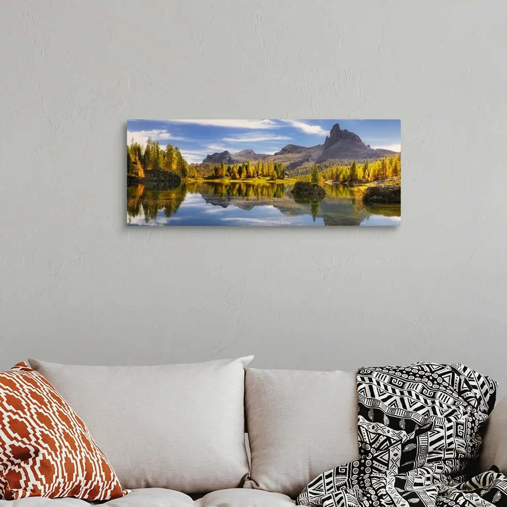 Becco di Mezzodi reflected in Lago di Federa, Lago di Federa, Ampezzaner Dolomites, Dolomites, UNESCO World Natural Heritage Dolomites, Veneto, Italy. Dolomites, Lago di Federa, Italy.