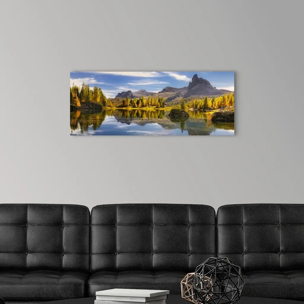 Becco Di Mezzodi Reflected In Lago Di Federa, Lago Di Federa, Dolomites, Veneto, Italy
