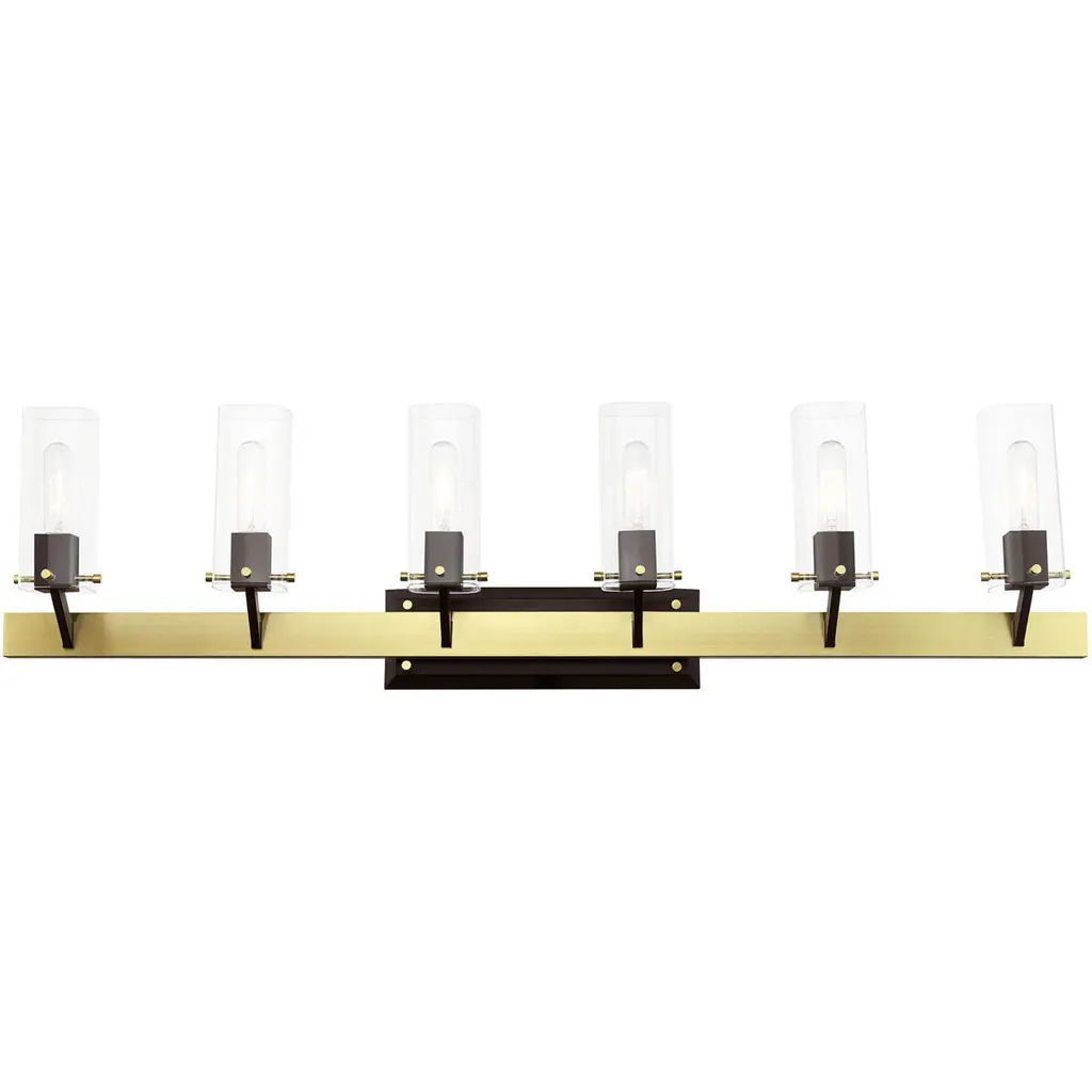 Beckett 6 Light 48 Inch Satin Brass Vanity Sconce Wall Light
