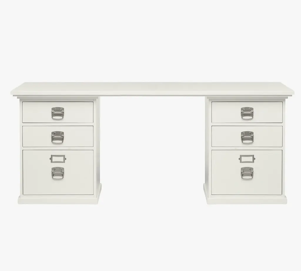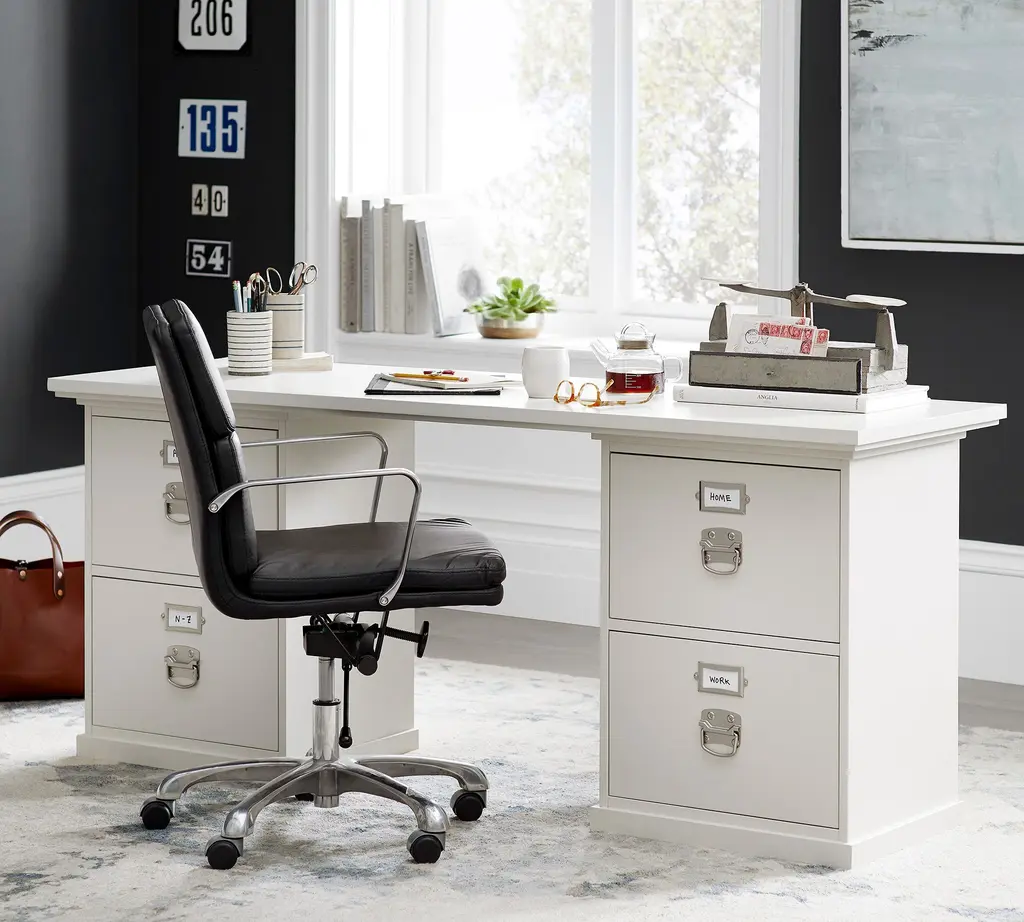 Customize a spacious, organized workspace for all your creative endeavors with the hardwood-framed pieces in our Bedford Collection. The Bedford Desk Set can be used singly or combined with other modular components to give you the ultimate flexibility in creating a workspace that’s ideal for you.