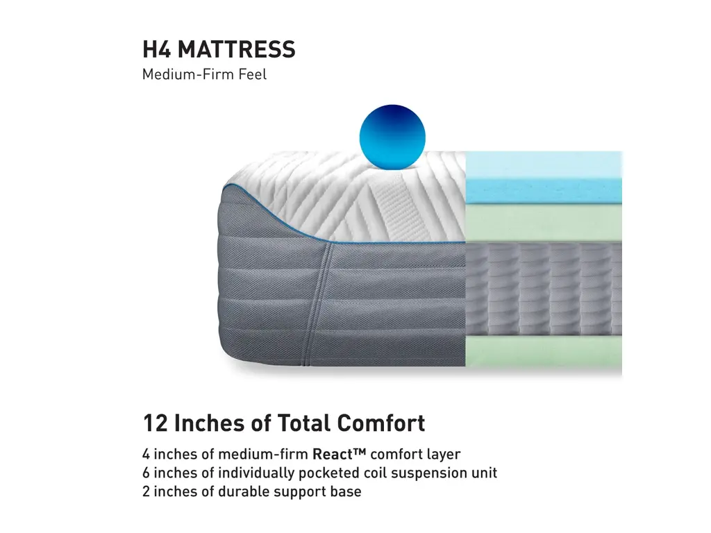 Get the best of both worlds with our innovative hybrid mattress! Breathable, cooling, and supportive in all the right places, the H4 combines our memory foam-like material with individually wrapped coils to create a responsive medium-firm mattress for a comfortable sleep that leaves you feeling renewed.